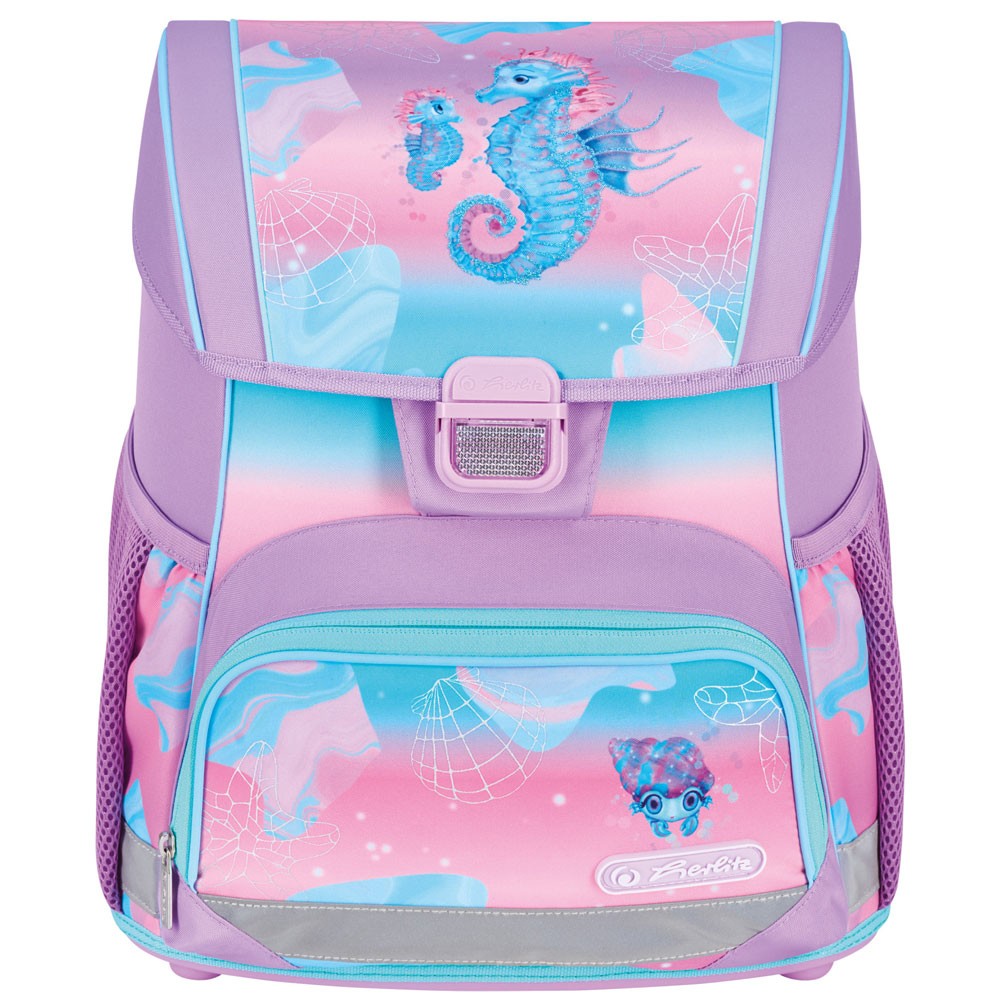 Školská taška pre prváka Herlitz Loop Plus Morský koník 4d. set a nožnice s guľatou špičkou zdarma