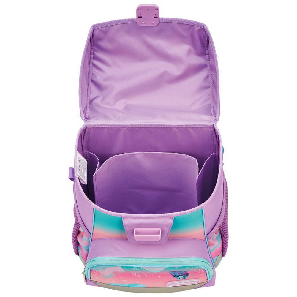 Jednokomorová taška pre prváka Herlitz Loop Plus Unicorn Dreams vhodná pre drobných prvákov je ladená do fialova s krásnym jednorožcom a trblietkami.