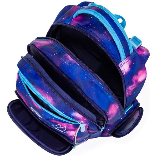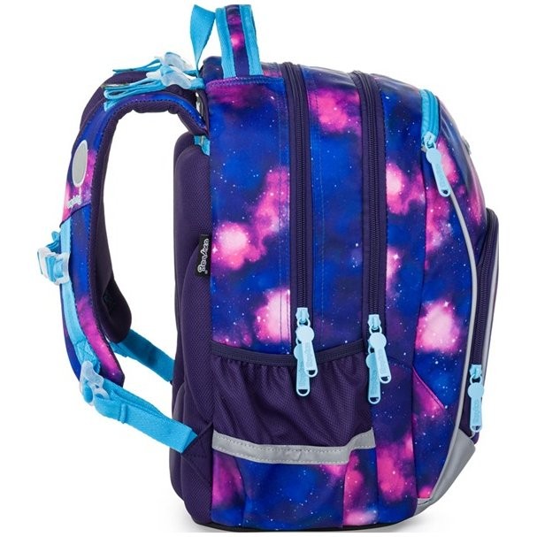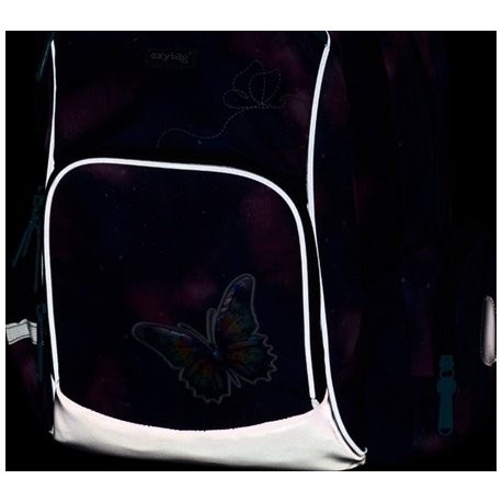 Batoh do školy pre dievčatá OXY GO Motýľ zaujme moderným dizajnom a premyslenou funkčnosťou. Batoh je ideálny pre deti od 1. do 3. triedy vysoké od 125 cm. Má anatomicky tvarovaný, priedušný chrbát a nastaviteľné ramenné popruhy na pohodlné nosenie. Školská taška má pridané háčiky umožňujú uchytenie dlhých popruhov. Vnútorné vrecká ponúkajú dostatok miesta na učebnice, zošity aj ďalšie potreby, pevné nepremokavé dno chráni obsah pred ušpinením a pretečením. Bočné vrecká, jedno na zips a jedno otvorené, slúži napr. na fľašu. Reflexné prvky zaisťujú bezpečnosť.