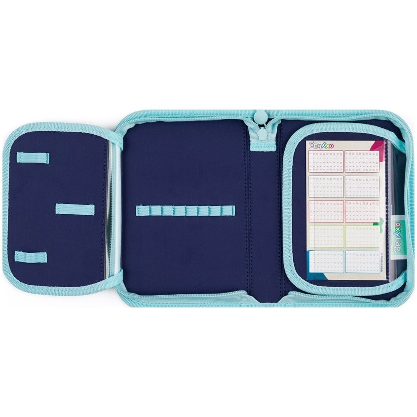 Školský peračník: Jednoposchodový s dvoma chlopňami, pútka na písacie potreby a priehľadná fólia na rozvrh hodín.