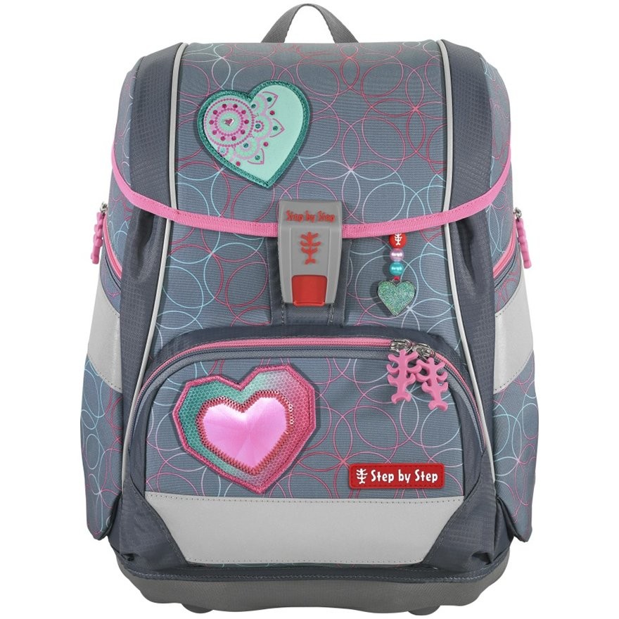 Školská taška pre prváka Step by Step 2IN1 PLUS Glitter Heart Hazle 6dielny set, doprava a desiatový set zadarmo