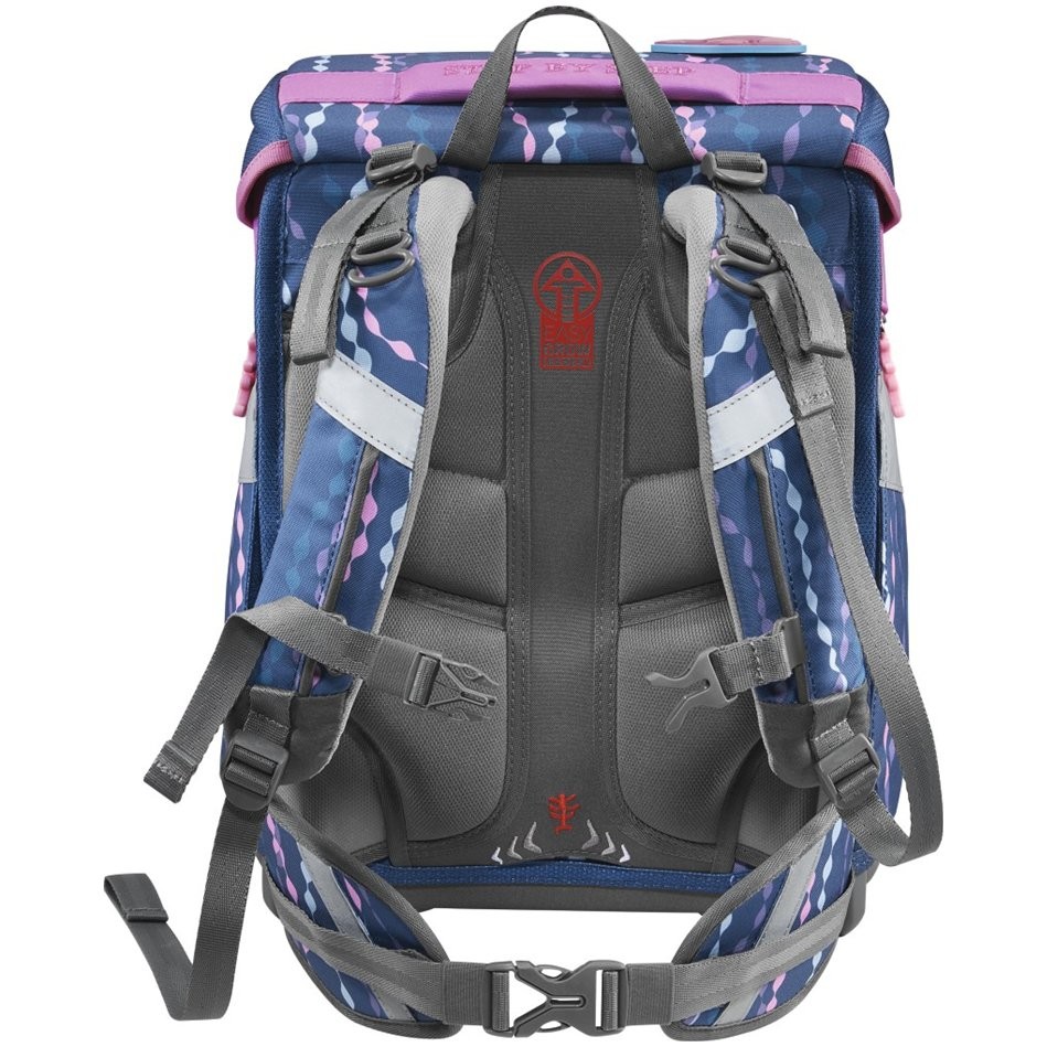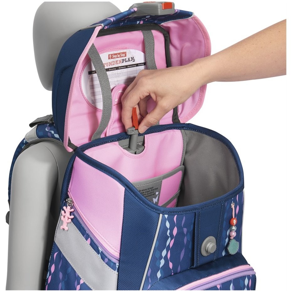 - pomocou otočného mechanizmu vo vnútri aktovky Step by Step zaisťujete presné nastavenie ramenných popruhov priamo na chrbte dieťaťa