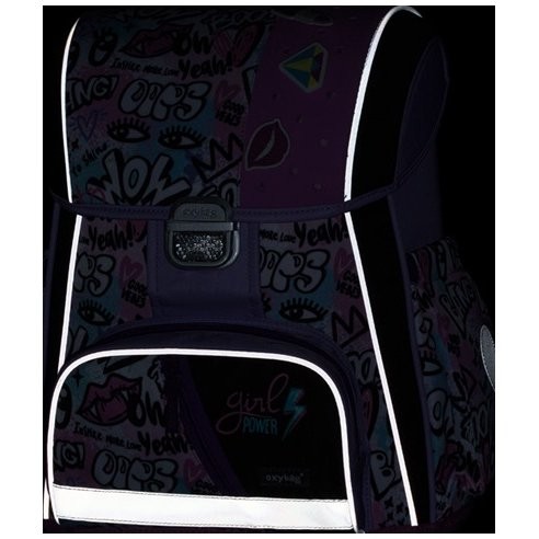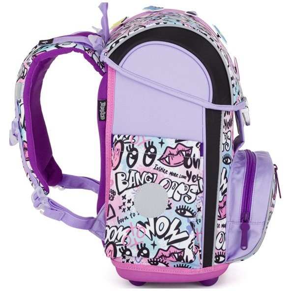Štýlová školská taška Funny Girl z radu Premium je anatomicky tvarovaná a zaisťuje tak správne usadenie na chrbte. Vystužený chrbát a vnútorná výstuha udržujú stály tvar batohu. Polstrovanie je z príjemného priedušného materiálu, široké mäkčené popruhy sú navrhnuté tak, aby dokonale priľnuli a rovnomerne zaťažili ramená dieťaťa. Aktovka sa skladá z jednej priestrannej komory, kam sa pohodlne zmestia všetky školské pomôcky pre deti v 1. av 2. triede. Dno školské tašky je z pevného materiálu, chráni tým obsah pred prevrhnutím a vysypaním. Zapínanie je na bezpečnostnú kovovú pracku s reflexnou odrazkou. Predné vrecko je určené na desiatu, nechýba rad reflexných prvkov, vďaka ktorým je aktovka viditeľnejšia.