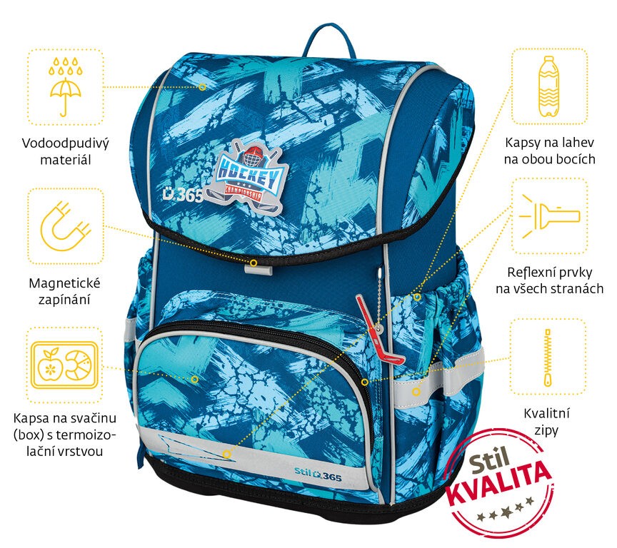 Naše školské aktovky sú navrhnuté tak, aby boli nielen praktické, ale aj hravé! Tento rok sme aktovku obohatili o veselý dizajn s príveskom v tvare hokejky. Každý deň tak môže byť iný, zábavný a plný farieb.