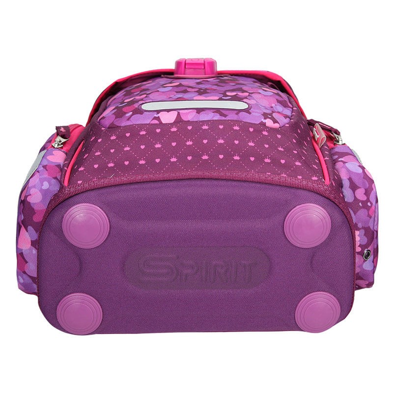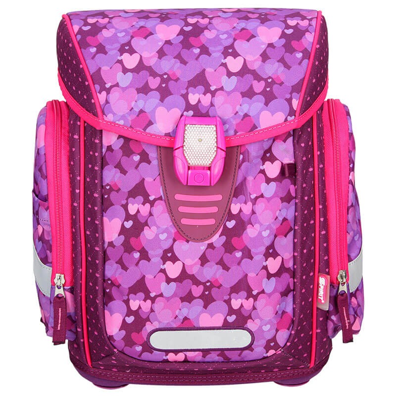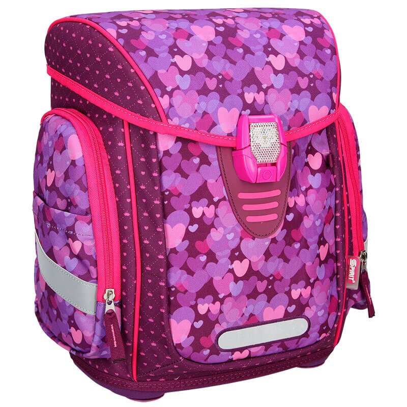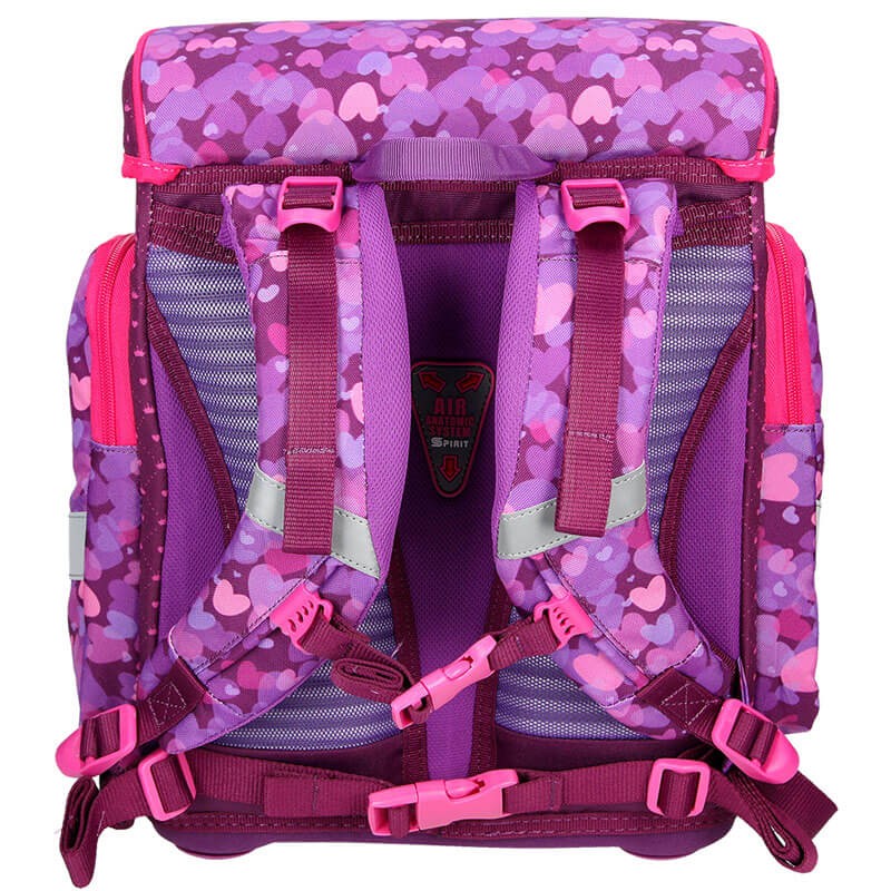 Aktovka je vďaka spevnenej konštrukcii stabilná a neprevracia sa. Ergonomicky tvarovaný chrbát zabezpečí jej pohodlné nosenie a správne prúdenie vzduchu pre optimálnu ventiláciu. Ľahko nastaviteľné anatomicky tvarované ramenné popruhy s hrudným pásom sú veľmi pohodlné. Pre lepšie rozloženie váhy je určený odnímateľný bedrový pás. Boky aktovky sú opatrené veľkými vreckami. Jedno vrecko má termo výplň a druhé je s integrovaným malým vreckom na fľašu. Kvalitné novo vyvinuté LED zapínanie a dostatok reflexných prvkov zaistia vášmu dieťaťu lepšiu viditeľnosť aj za nepriaznivého počasia.