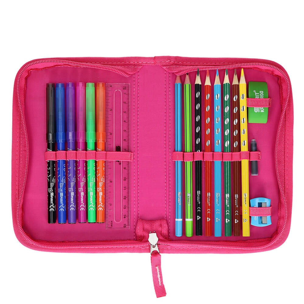 Jednoduchý peračník obsahuje 18 pútok, s náplňou. Je vybavený 6 fixami, 6 pastelkami, dvoma ceruzkami, pravítkom, gumou a strúhatkom.