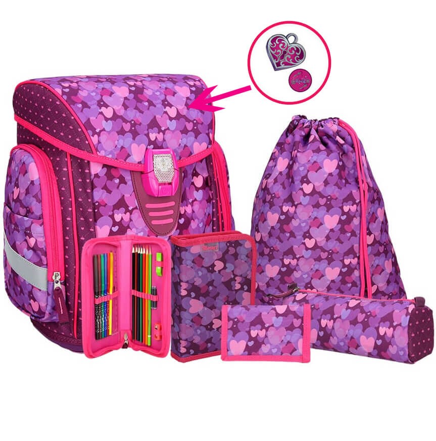 Set sa skladá z aktovky, vybaveného peračníka, okrúhleho nevybaveného púzdra, vrecka na prezúvky, peňaženky a dvoch opakovane lepiacich obrázkov.