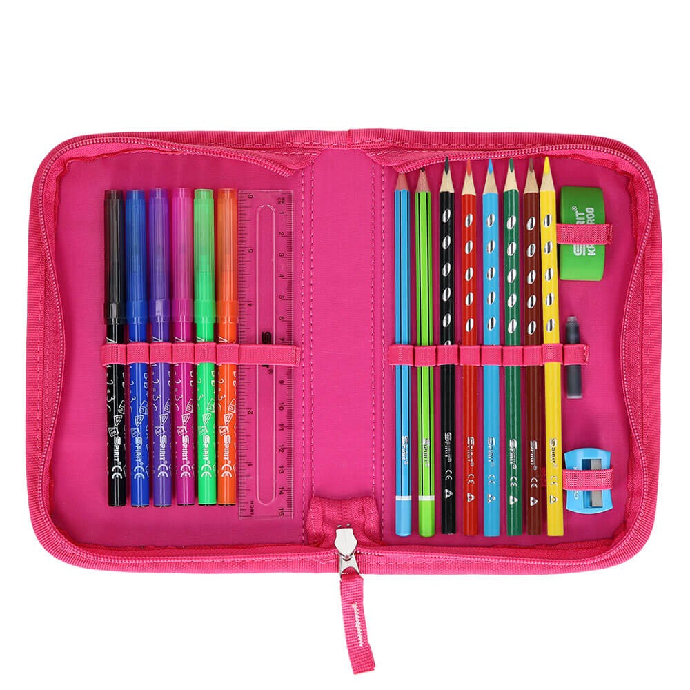 Jednoduchý peračník obsahuje 18 pútok, s náplňou. Je vybavený 6 fixami, 6 pastelkami, dvoma ceruzkami, pravítkom, gumou a strúhatkom.