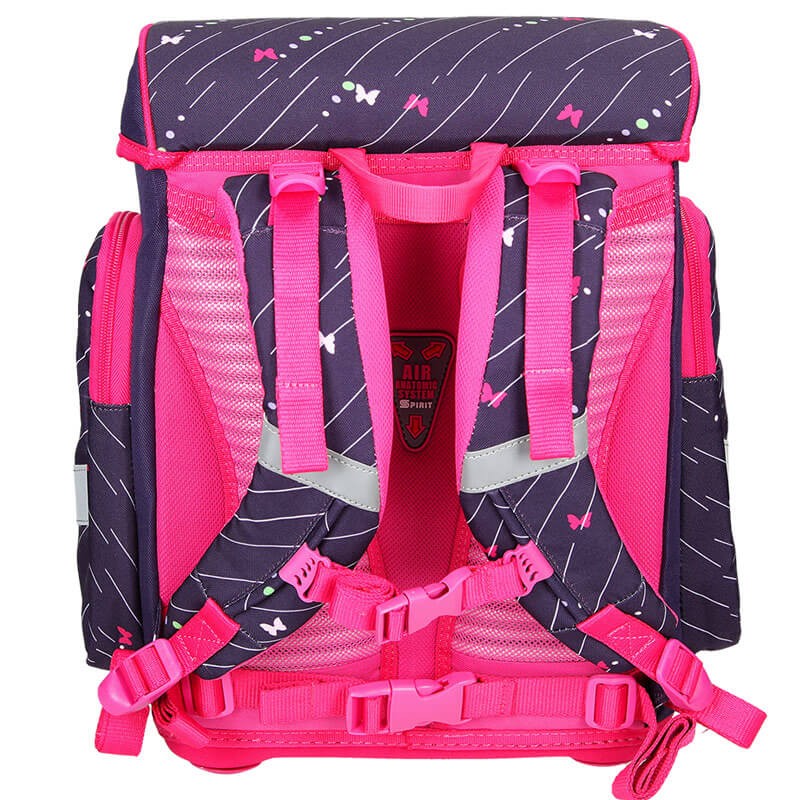 Pevná a stabilná školská aktovka ideálna pre deti od 1. - 4. triedy s krásnym dizajnom a motýliky, ktorý si deti môžu jednoducho a rýchlo ozdobiť pomocou opakovane lepiacich obrázkov, ktoré sú súčasťou balenia.