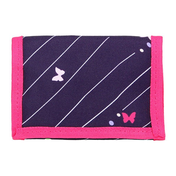 Textilná peňaženka so zapínaním na suchý zips obsahuje väčšiu a menšiu priehradku, kapsičku so zipsom na drobné a krúžok napr. na kľúče.