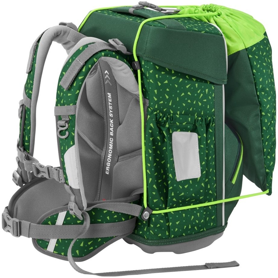 Školská aktovka má hmotnosť iba 950 g a je vhodná pre deti od 1. do 4. triedy. Školská taška disponuje ergonomickým chrbtovým systémom, má ultraľahký chrbtový panel zo sklených vlákien, ergonomicky tvarovaný chrbát s priedušným polstrovaním, integrované magnetické body pre pripevnenie aktovky, je možné ich dokúpiť samostatne). Nastaviteľné ergonomické ramenné popruhy a doťahovacie pásky pre tesné doliehanie aktovky k chrbtu. Odnímateľný, výškovo nastaviteľný hrudný popruh s úchytmi na konce ramenných popruhov a polstrovaný, odnímateľný bedrový pás.