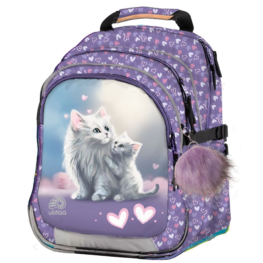 Školský batoh pro prváka značky Ulitaa Klasik s roztomilými mačiatkami je navrhnutý špeciálne pre stredne veľké prvňačky. Ergonomický batoh Klasik značky Ulitaa je vhodný pre deti približne od 123 do 140 cm, ktorým už menšie batohy nestačia, ale stále potrebujú správnu podporu chrbta. Model Klasik ponúka pohodlné nosenie, správne rozloženie váhy a perfektne sedí školákom strednej aj väčšej postavy. Vznikol ako ideálny doplnok k našim menším batohom Ulitaa Mini a rozširuje ponuku tak, aby si každý prváčik našiel batoh, ktorý skutočne padne.