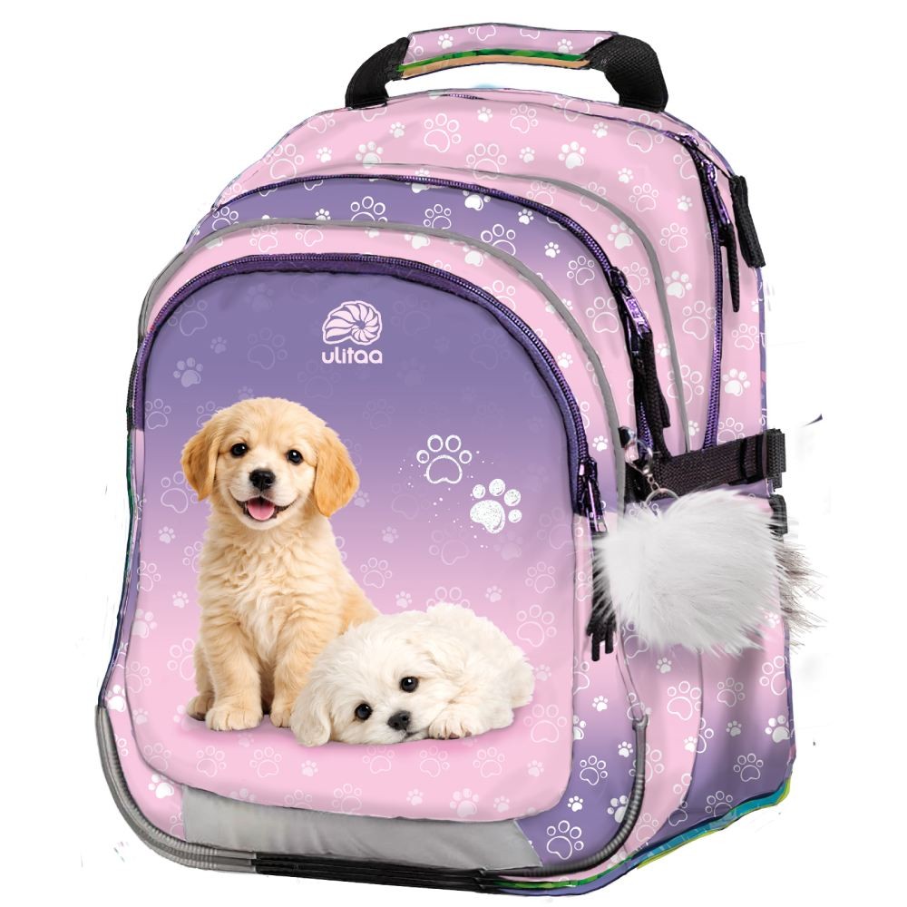 Školský batoh pro prváka značky Ulitaa Klasik s roztomilými psíkmi je navrhnutý špeciálne pre stredne veľké prvňačky. Ergonomický batoh Klasik značky Ulitaa je vhodný pre deti približne od 123 do 140 cm, ktorým už menšie batohy nestačia, ale stále potrebujú správnu podporu chrbta. Model Klasik ponúka pohodlné nosenie, správne rozloženie váhy a perfektne sedí školákom strednej aj väčšej postavy. Vznikol ako ideálny doplnok k našim menším batohom Ulitaa Mini a rozširuje ponuku tak, aby si každý prváčik našiel batoh, ktorý skutočne padne.
