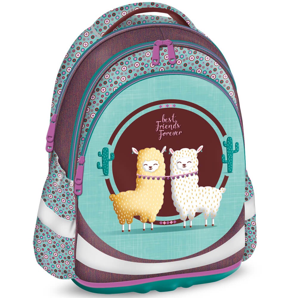 Dvojkomorový školský batoh s veľkou prednou kapsou s veselým motívom lám vhodný pre žiakov 1. stupňa ZŠ (2. - 5. trieda). Vzhľadom k dĺžke chrbtovej časti je vhodný len pre väčších prváčikov alebo pre 3. - 5. triedu.