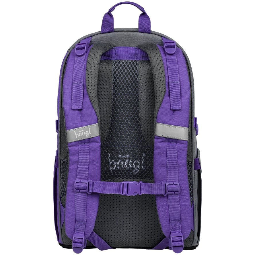 Školský batoh pre 2. stupeň dievčenský Baagl Skate Dual v praktickom 5-dielnom sete obsahuje – batoh, peračník, ľadvinku, športovú tašku a obal na notebook – všetko v rovnakom dizajne.