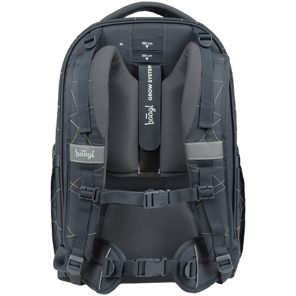 Školský batoh Baagl Skate Max Wave – ľahký batoh s hmotnosťou iba 1150 g je vybavený posuvným chrbtovým systémom, ktorý umožňuje nastavenie až na štyri rôzne veľkosti