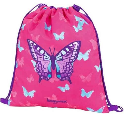 Ľahká školská aktovka pre prváčikov s trblietavým obrázkom motýľa vhodná pre prváčikov. Skvele padne i deťom nižšieho vzrastu, vďaka kratšej dĺžke chrbtovej časti. Set sa skladá z aktovky, vybaveného peračníka a vrecka na prezúvky rovnakého motívu.