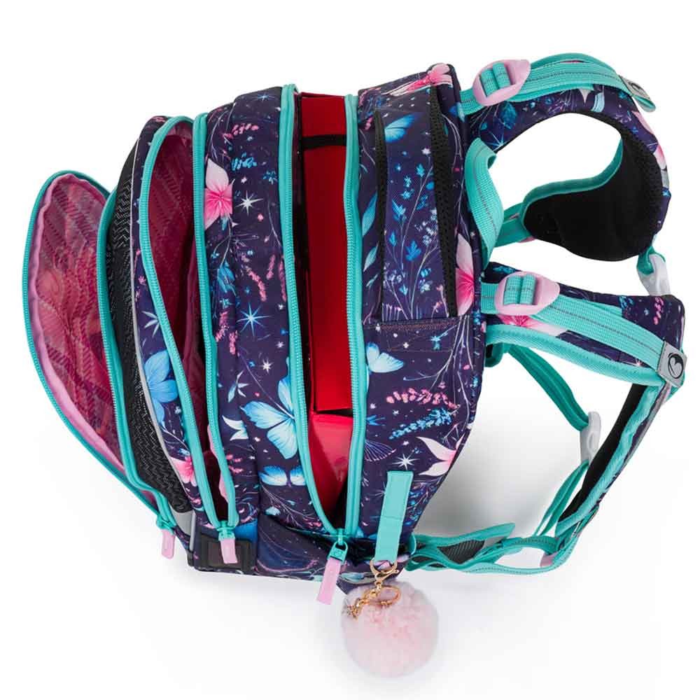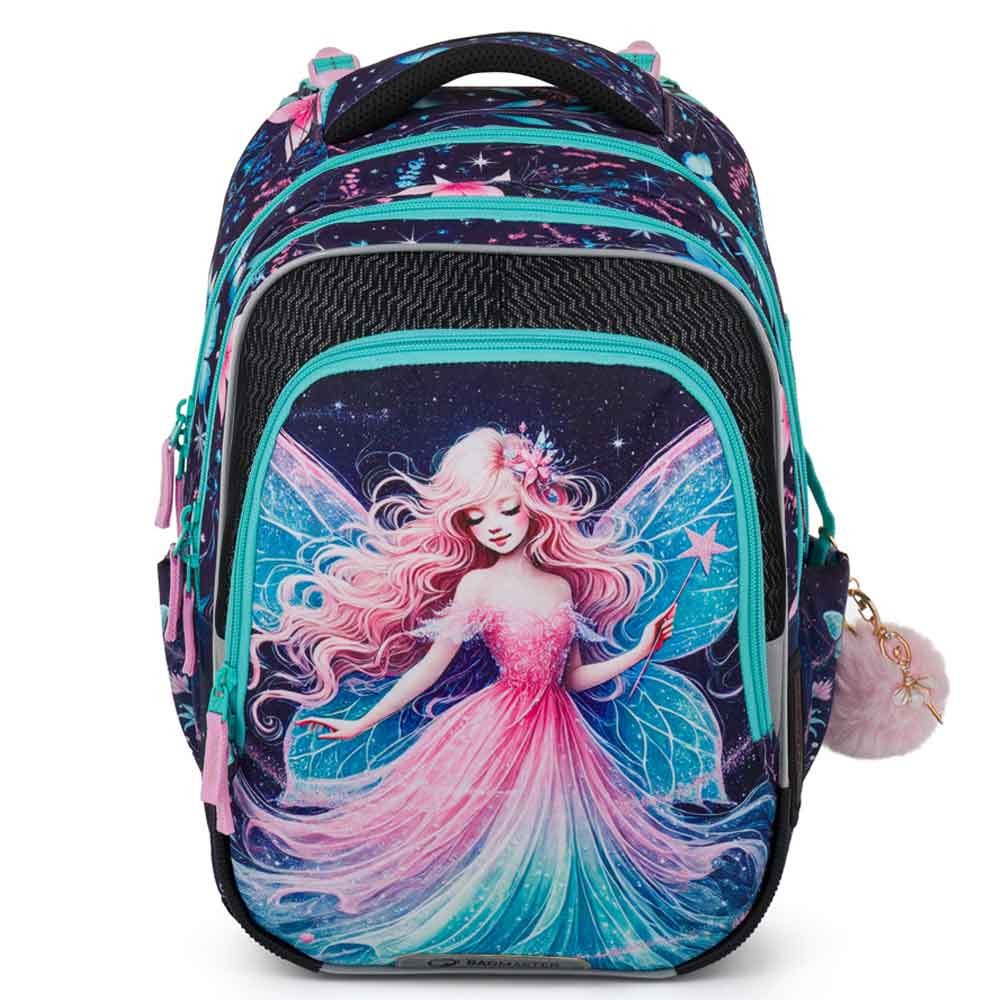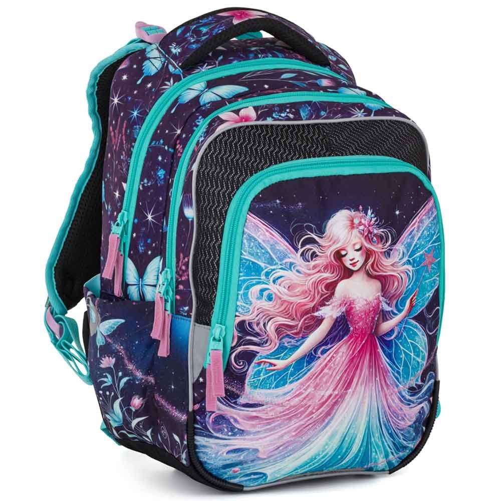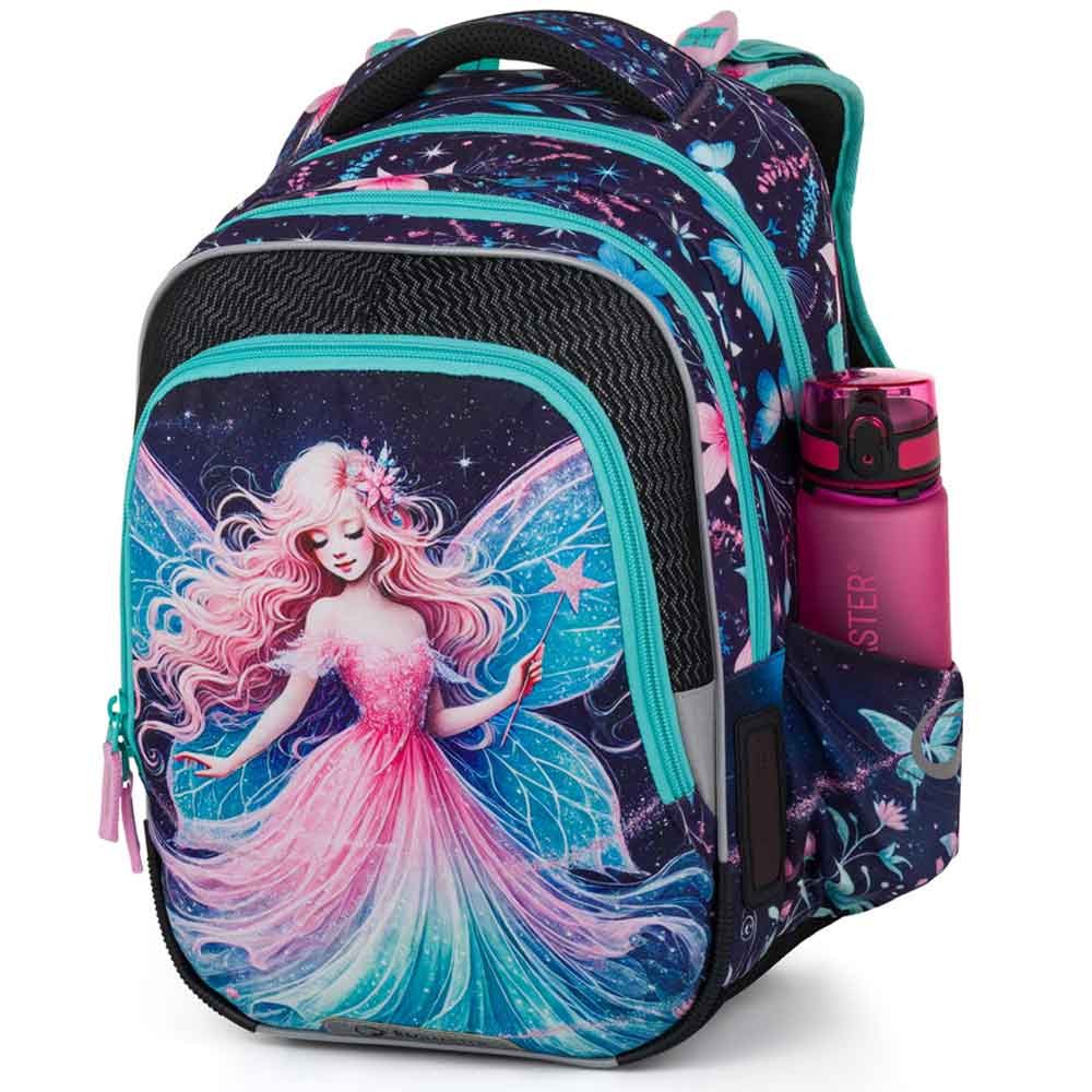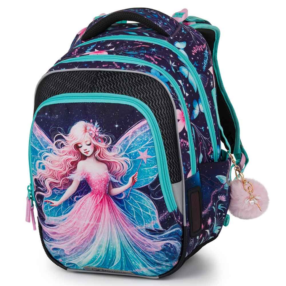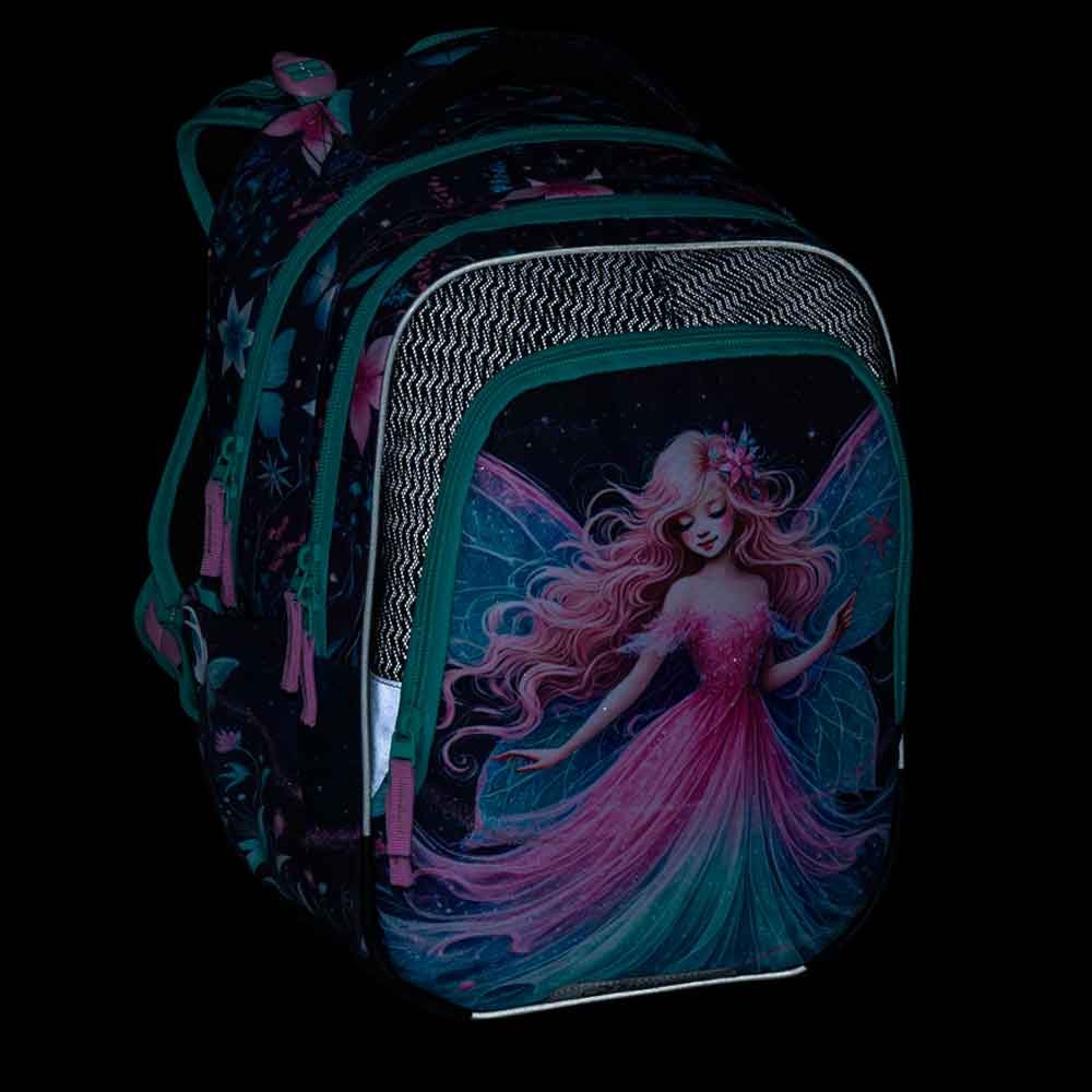 Školský batoh pre prvákov s vílou pre malé slečny od 1. do 3. ročníka základnej školy. Váži iba 0,94 kg, napriek tomu je veľmi priestranný. Má tri veľké komory a organizér na mobil, peňaženku a ďalšie cennosti. Stojí na plastových nožičkách a vo tmě svieti reflexnými prvkami. Nový chrbtový systém s nastaviteľným hrudným pásom a odľahčeným vyberateľným bedrovým pásom má zdravotný posudok.