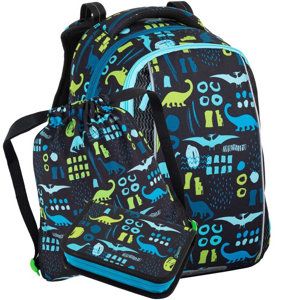 Dvojkomorový školský batoh pre chlapcov s motívom dinosaurov vhodný pre 1.-3. triedu ZŠ. Do prvej triedy vhodný iba pre dievčatá vyššieho vzrastu (cca od 128 cm). Jedná sa o nový model batohu s vylepšenou ergonómiou vyvinutou v spolupráci s poprednou českou odborníčkou na detskú rehabilitáciu MUDr. Katarínou Smíškovou.