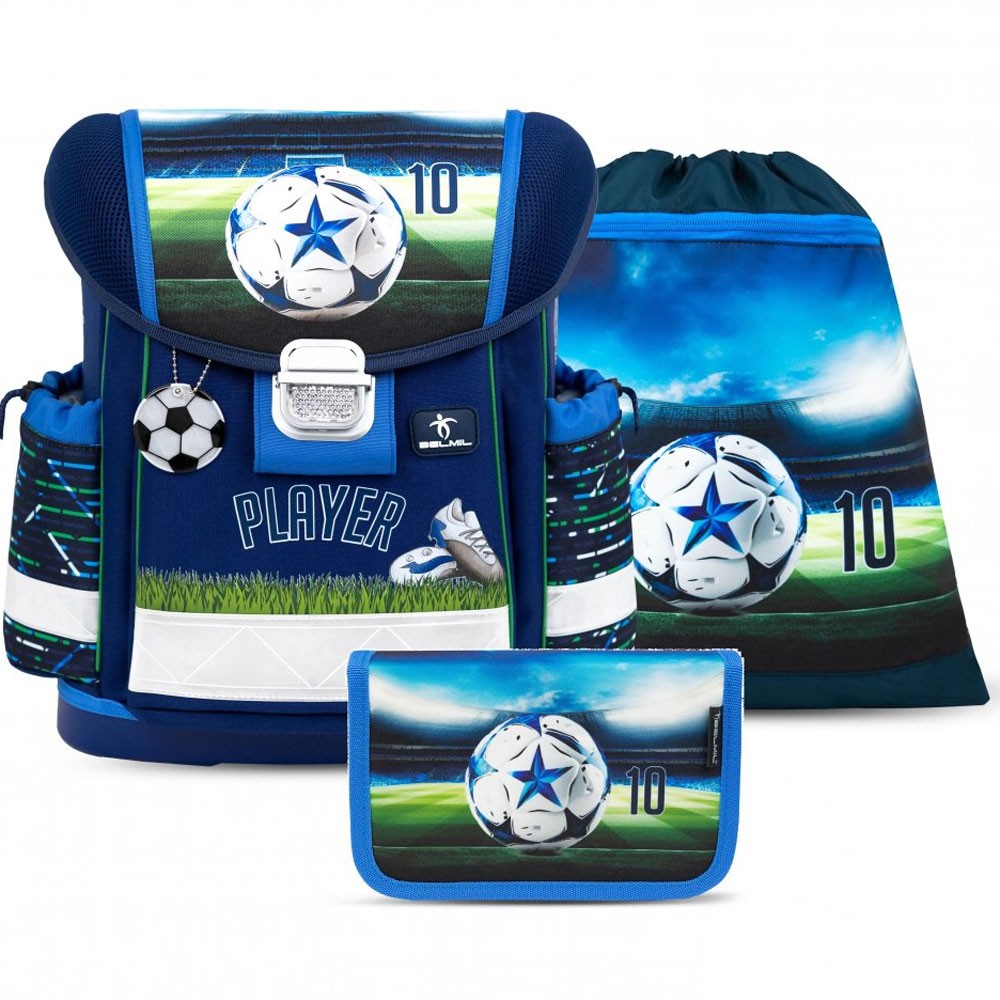Set sa skladá z tašky, peračníka a vrecka na cvičky rovnakého motívu. Stabilná a ľahká školská aktovka Belmil je vyrobená z kvalitného nepremokavého materiálu s ergonomicky tvarovanou a polstrovanou chrbtovou časťou.