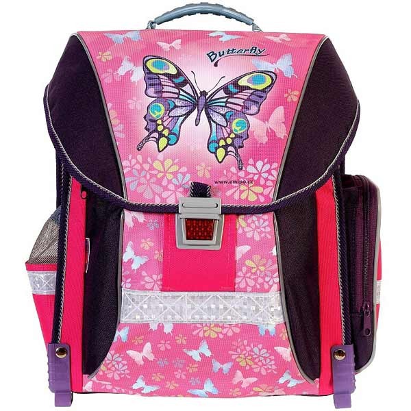 Školský batoh (aktovka) Emipo Anatomic Butterfly je vhodný pre všetky prváčky aj tie nižšieho vzrastu. Dievčatá ocenia nadčasový motív, rodičia zas dlhodobú skúsenosť firmy EMIPO s výrobou tašiek. Sú vyrábané v súlade s ČSN 796506. Vyznačujú sa pevnou konštrukciou, použitím odľahčených materiálov, bohatým vnútorným členením, použitím bezpečnostných prvkov, novým ergonomickým polstrovaním chrbtovej časti a nosných remeňov, predĺženou zárukou na 36 mesiacov a nesie značku Český výrobok.