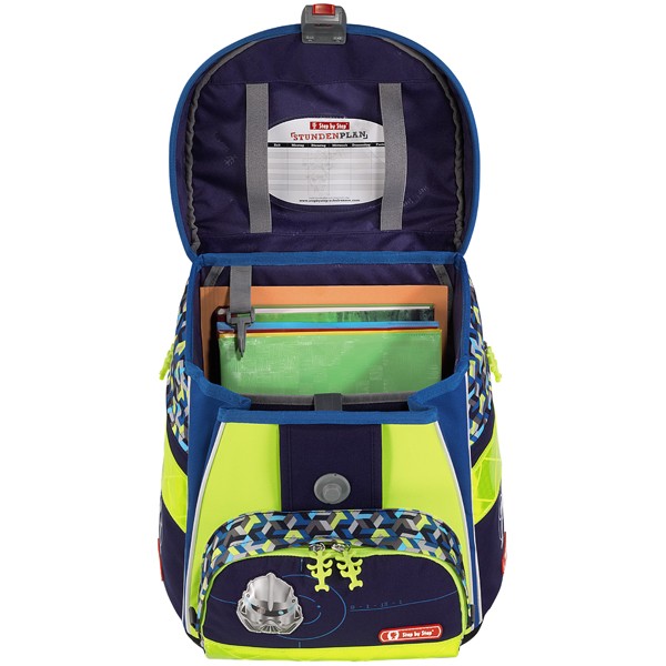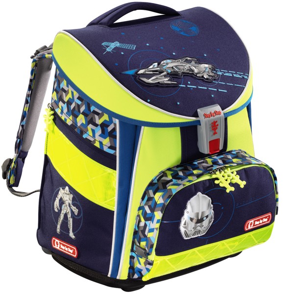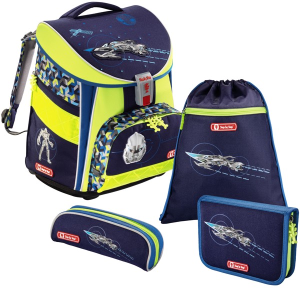 Značková školská aktovka s certifikátom AGR s bohatými reflexnými plochami vhodná pre prváčikov aj menšieho vzrastu, ktorú zakúpite iba u nás. Vesmírna aktovka, kvalitne vybavený peračník s jednou klopou, puzdro a sáčok na prezúvky alebo telocvik sú súčasťou tohto kvalitného nemeckého setu Hama Step by Step. Školská taška má pevný tvar, anatomicky tvarovaný polstrovaný chrbát a pevné dno.