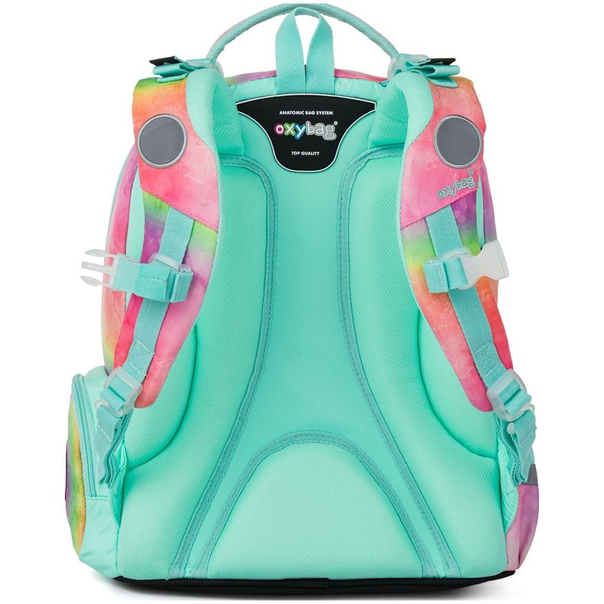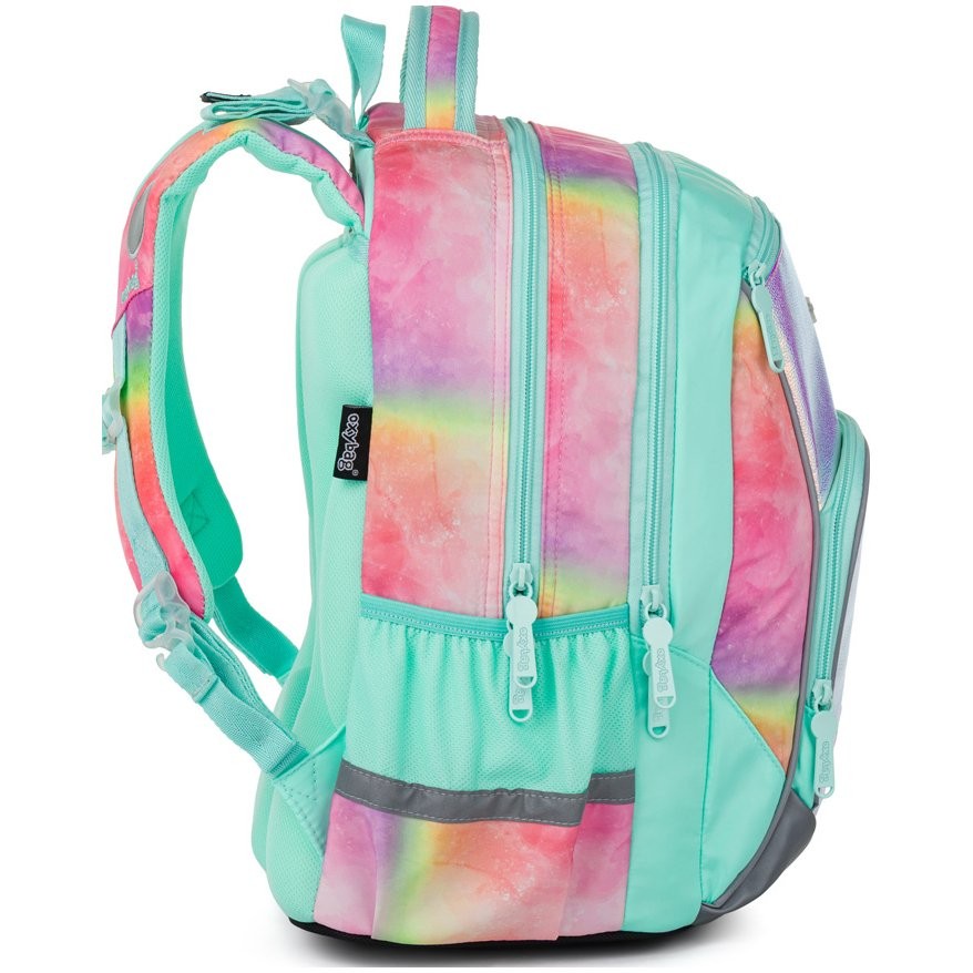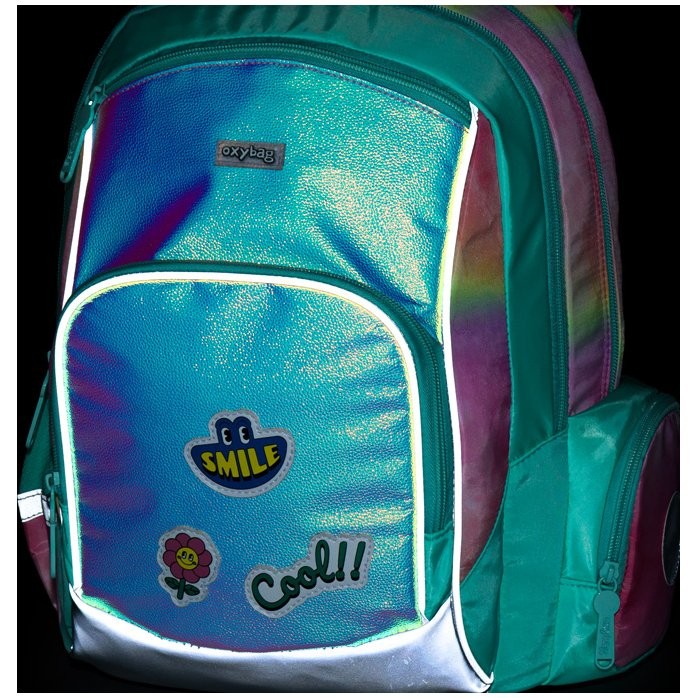 Taška pre prváka OXY GO Magic zaujme moderným dizajnom a premyslenou funkčnosťou. Školský batoh je ideálny pre deti od 1. do 3. triedy vysoké od 125 cm. Má anatomicky tvarovaný, priedušný chrbát a nastaviteľné ramenné popruhy na pohodlné nosenie. Školská taška má pridané háčiky umožňujú uchytenie dlhých popruhov. Vnútorné vrecká ponúkajú dostatok miesta na učebnice, zošity aj ďalšie potreby, pevné nepremokavé dno chráni obsah pred ušpinením a pretečením. Bočné vrecká, jedno na zips a jedno otvorené, slúži napr. na fľašu. Reflexné prvky zaisťujú bezpečnosť.