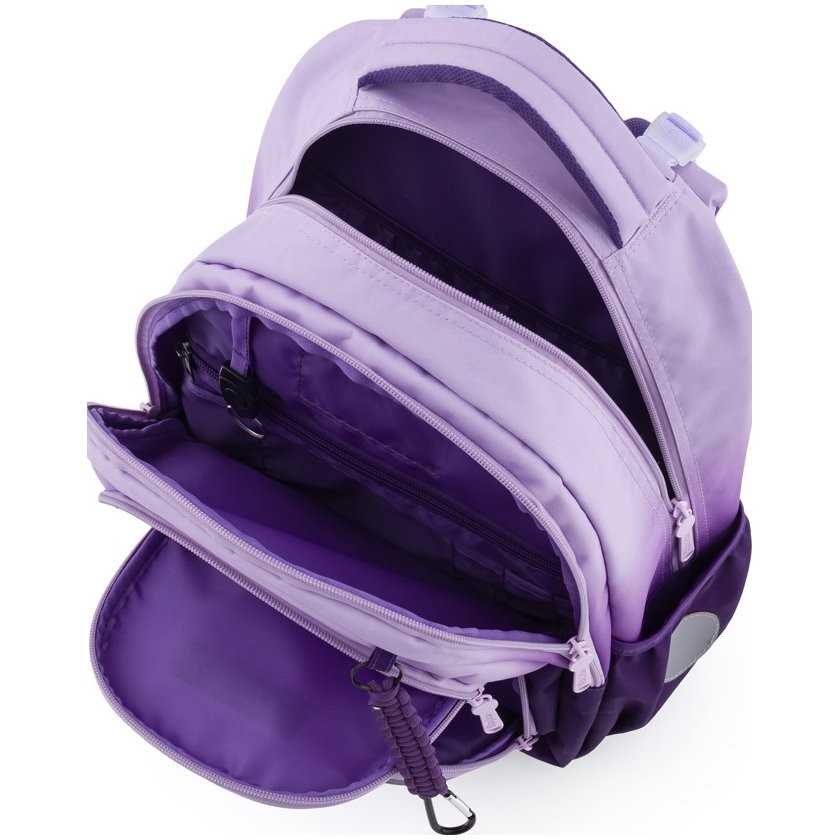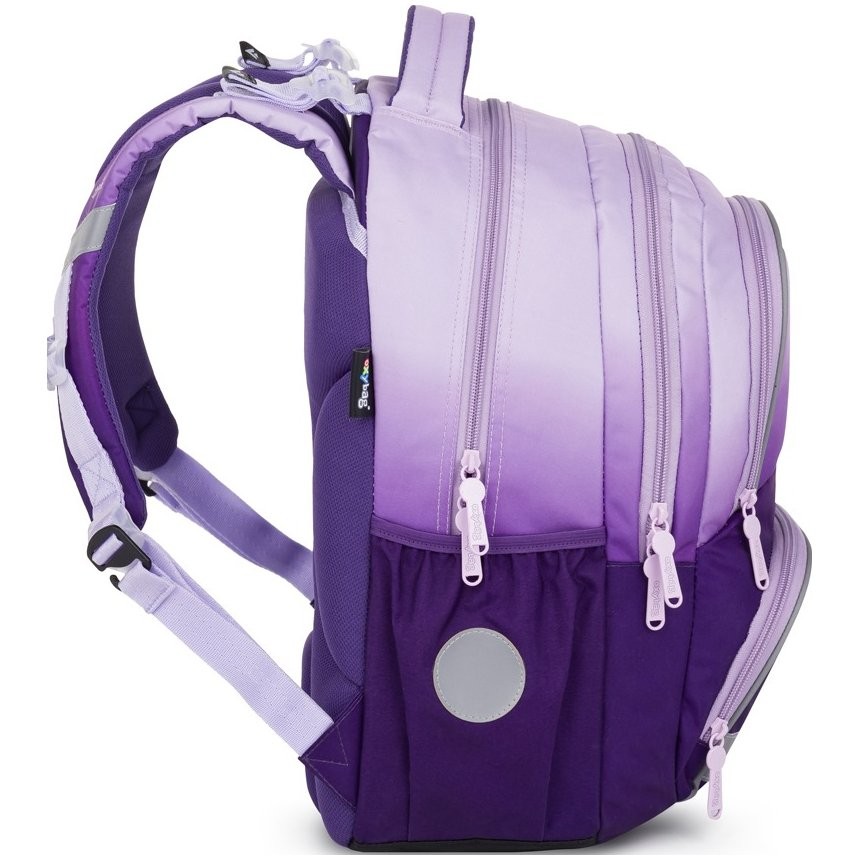 Taška do školyOXY NEXT Purple je ideálna pre deti od 2. - 4. triedy ZŠ. Vhodné pre deti s výškou od 128 cm. Disponuje anatomicky tvarovaným chrbtom, polstrovanými ramennými popruhmi a hrudným popruhom. Po stranách nájdete dve väčšie vrecká. Či už vaše dieťa bude v batohu nosiť čokoľvek, nič sa mu v ňom nestratí, batoh totiž ponúka veľkorysé množstvo najrôznejších vreciek, veľkých alebo aj malých. Hľadanie kľúčov nehrozí, batoh obsahuje aj držiak na kľúče alebo školský čip. Ľahký, pritom dostatočne veľký pre všetky veci, ktoré chce mať každý školák po ruke. Mysleli sme aj na bezpečnosť vašich detí, školský batoh je vybavený veľkým množstvom reflexných prvkov. Dno plecniaka je opatrené spevneným nepremokavým materiálom.