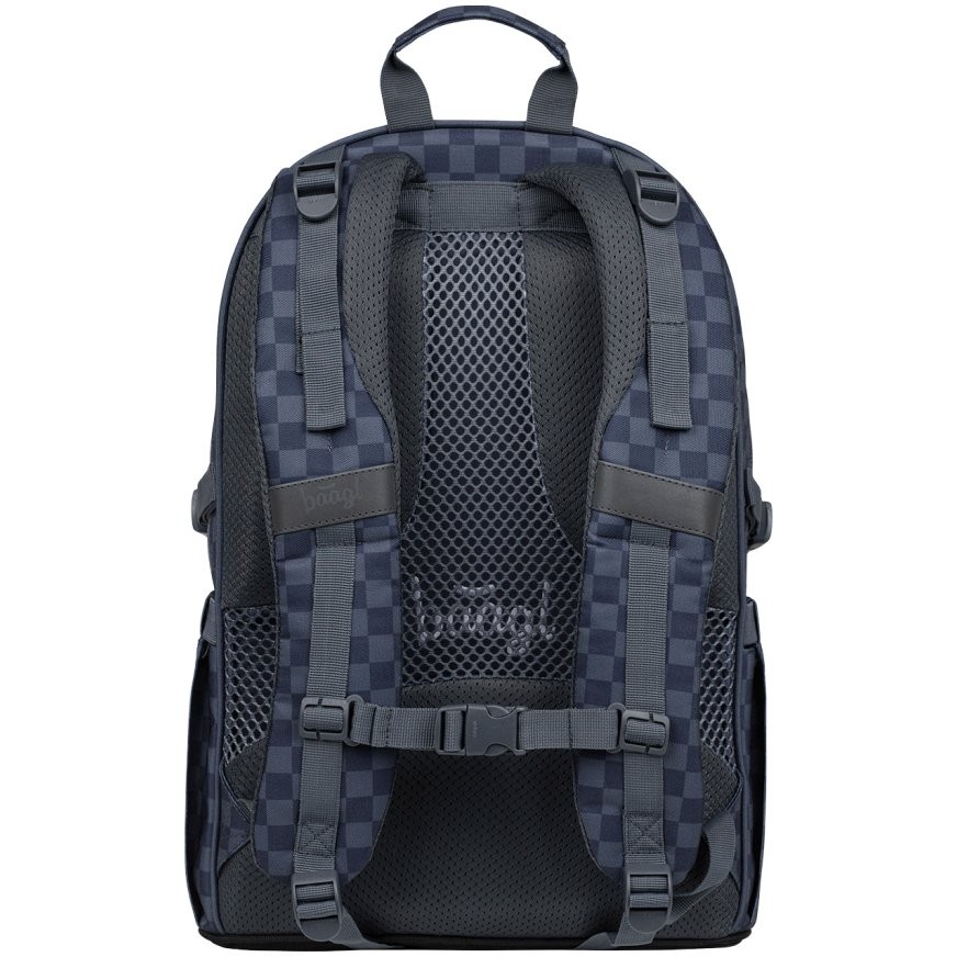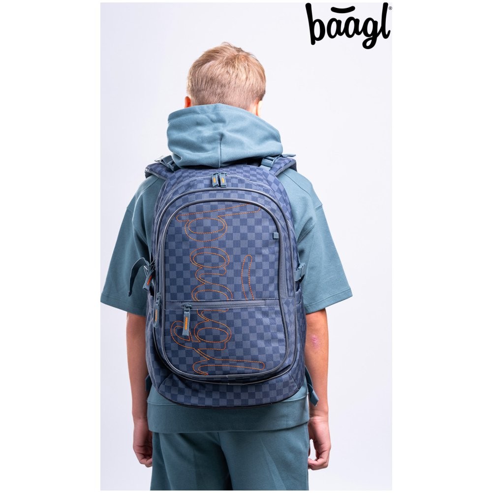 Školský batoh pre 2. stupeň Baagl Core Ska modrý má anatomicky tvarovaný chrbát s odvetrávaním a polstrované vrecko na notebook.