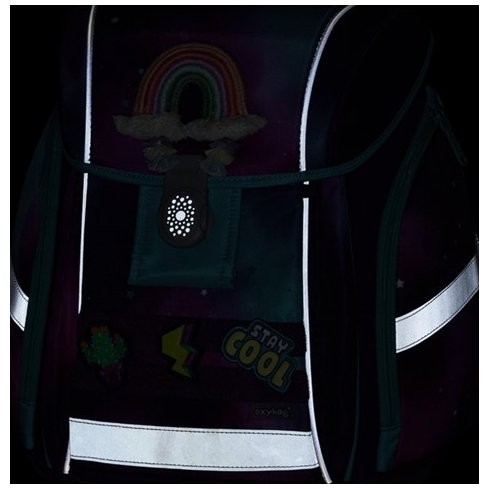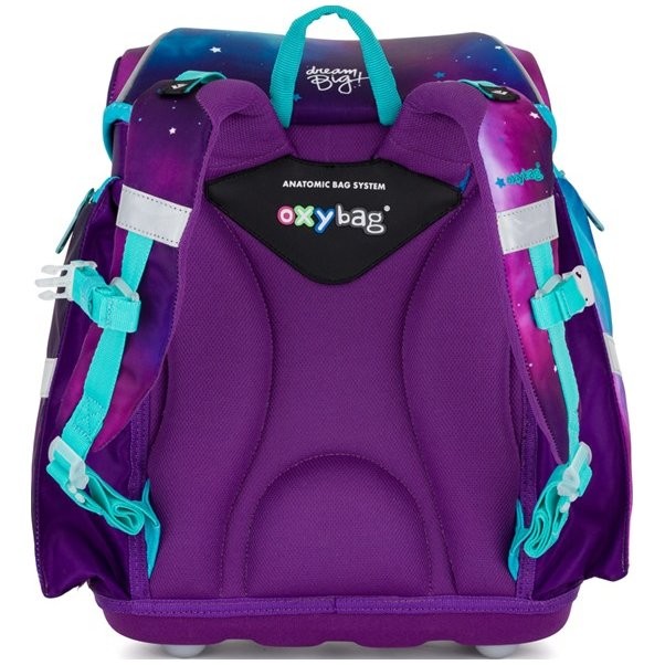 Aktovka pre dievčatá Oxybag radu Premium Light Dream ponúka kvalitu, priestor na školské potreby aj odľahčenú konštrukciu pre pohodlnejšie nosenie, čo ocenia predovšetkým tí najmladší školáci s výškou od 121 cm. Aktovka do školy má vďaka odľahčenému materiálu iba 970 g. Polstrovanie je z príjemného priedušného materiálu, široké mäkčené popruhy sú navrhnuté tak, aby dokonale priľnuli a rovnomerne zaťažili ramená dieťaťa. Pre pohodlnejšie nosenie je aktovka ďalej vybavená príťažnými a hrudnými popruhmi. Aktovka je aj navyše vybavená pridanými háčikmi na uchytenie popruhov. Nechýbajú ani praktické reflexné prvky, jednoduché magnetické zapínanie, vnútorný rozraďovač aj veľké množstvo vreciek.