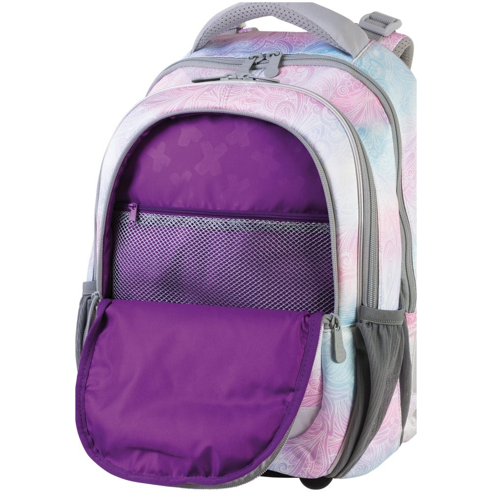 Trojkomorový školský batoh Junior Rainbow s jemnou kombináciou farieb je vhodný od 1. - 4. triedy ZŠ. P>
