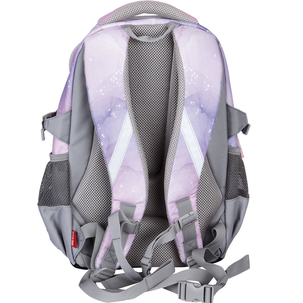 Batoh je anatomicky tvarovaný a má tri komory a jedno vrecko na drobnosti. Hlavná komora batohu obsahuje oddelené vrecko na uloženie dosiek na zošity av prednej komore je organizér na drobné predmety, kľúče a pod. Bočné sieťované vrecká sú určené na prenášanie fľaše na pitie. Systém Air Flow a priedušné polstrovanie umožní dobrú cirkuláciu vzduchu a príjemné nosenie. Polstrované nastaviteľné ramenné popruhy dopĺňajú hrudný popruh na zvýšenie komfortu pri nosení. Batoh je doplnený zo všetkých strán o reflexné prvky na zvýšenie bezpečnosti. Na prenášanie v ruke slúži mäkko polstrované madlo, na zavesenie potom textilné pútko.
