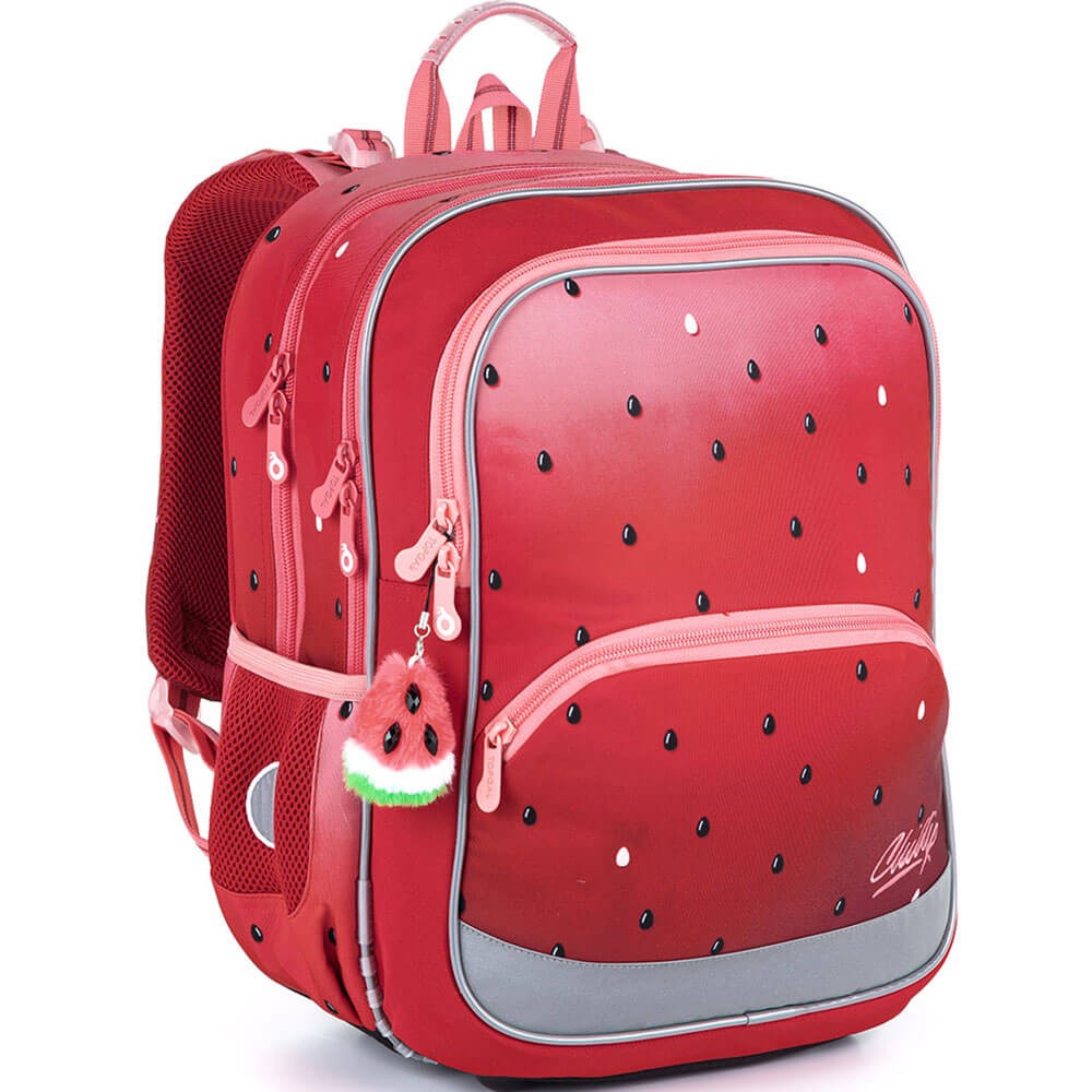 Nový ľahký dvojkomorový červený batoh červený batoh v dizajne vodného melónu s chlpatým príveskom určite zaujme veľa dievčat. Batoh je určený pre školáčky od 1. do 3. triedy.