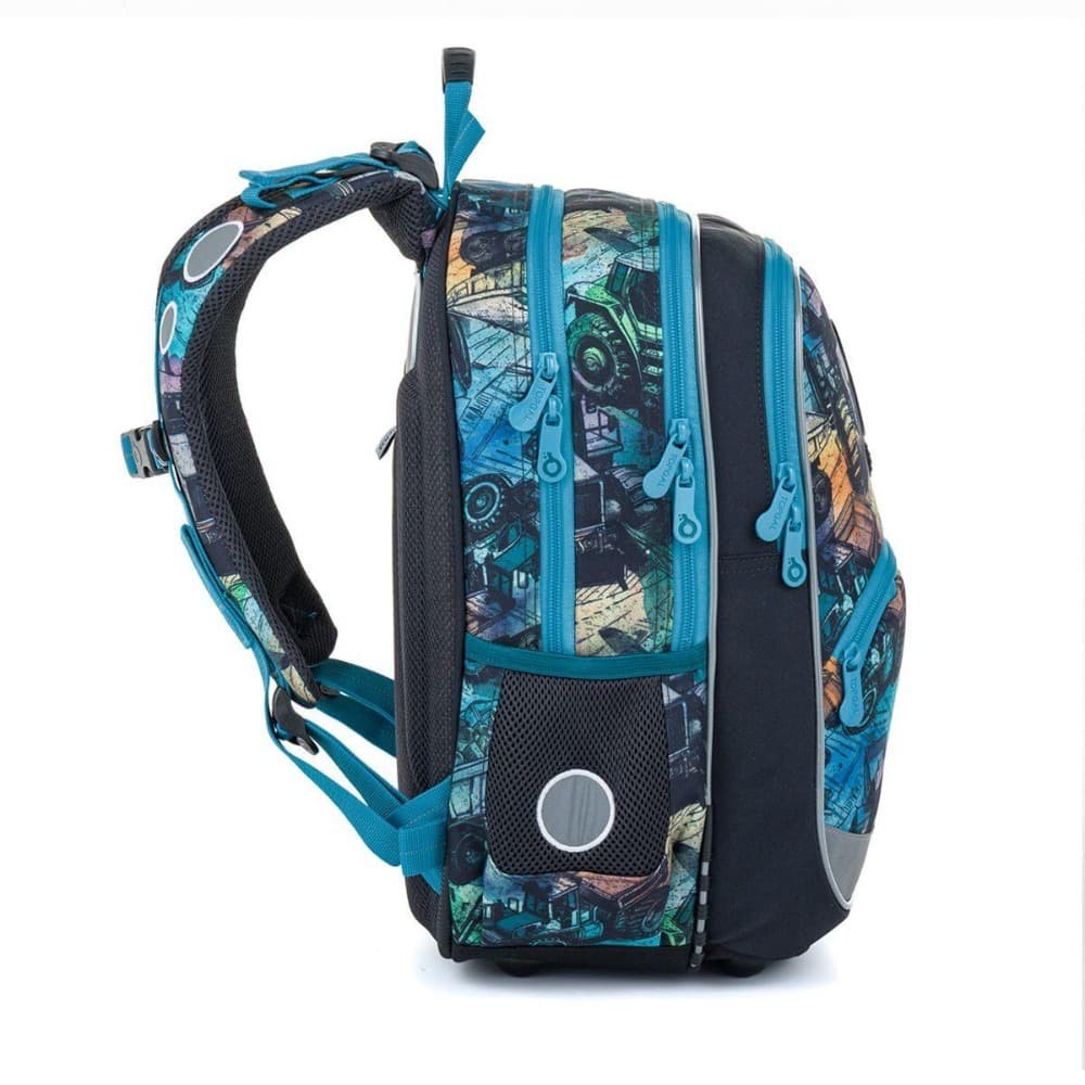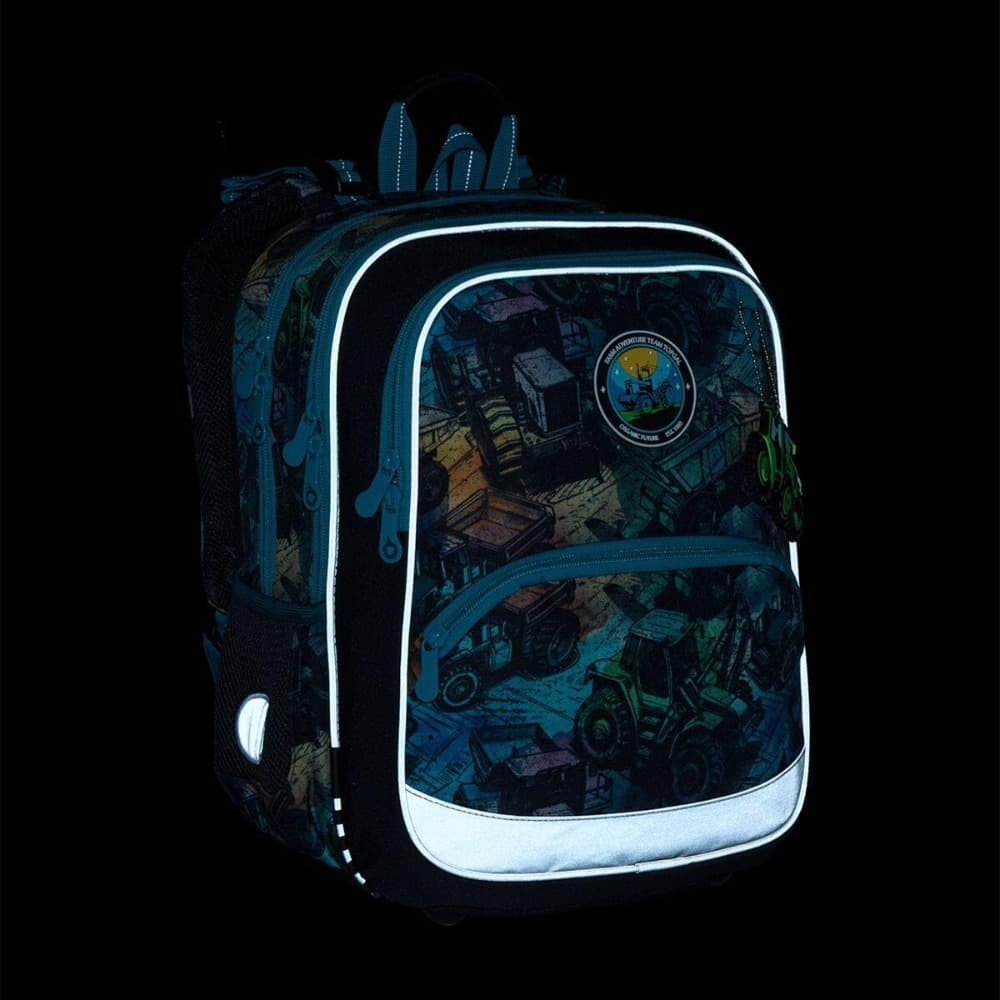 Školský batoh pre deti od 115 cm, ideálny pre obdobie od 1. do 3. triedy. Farebný motív stavebných strojov zaujme malých školákov a premení každý školský deň na nové dobrodružstvo. Batoh má pevný, ergonomicky tvarovaný chrbát a mäkko polstrované ramenné popruhy, ktoré sa ľahko prispôsobia drobnejšej postave dieťaťa. Výškovo nastaviteľná hrudná pracka pomáha udržať batoh správne usadený na chrbte a zvyšuje pohodlie pri nosení.