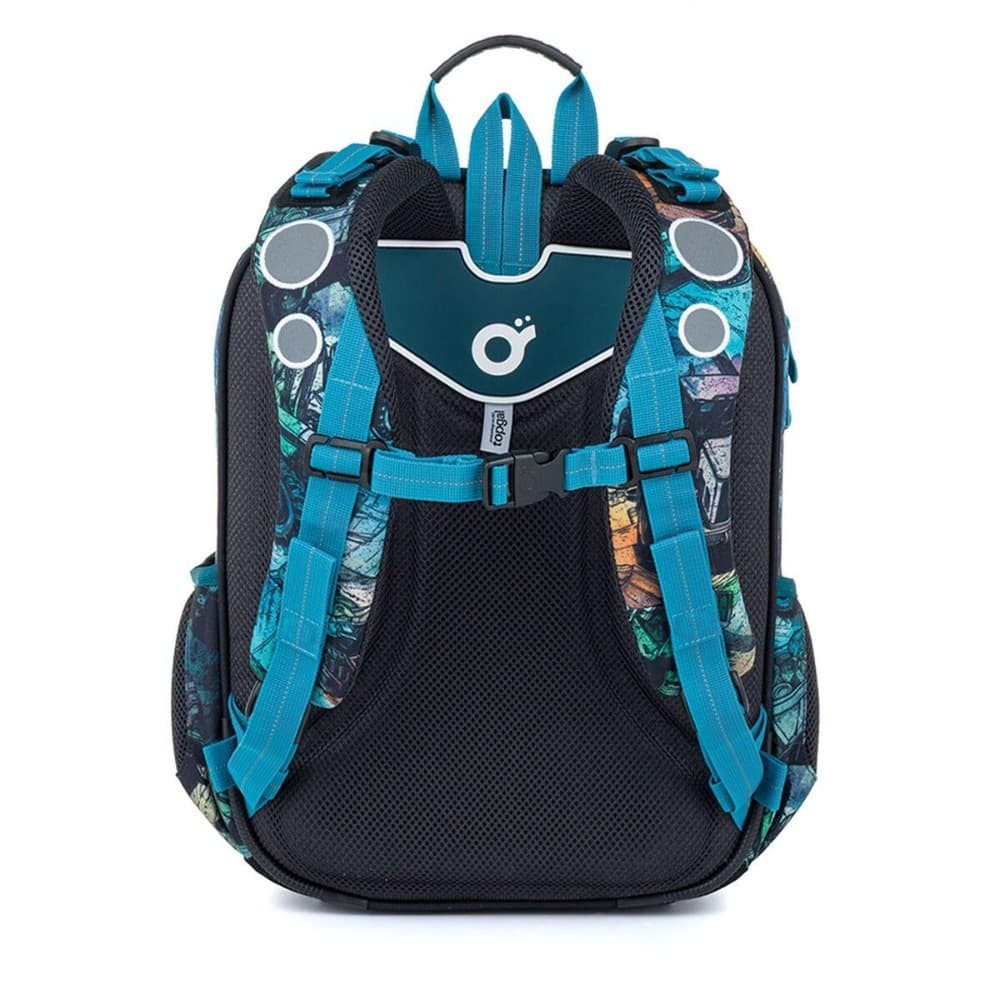 Vnútorný priestor je prehľadne členený tak, aby sa v ňom malé deti ľahko orientovali. Do hlavnej komory odporúčame uložiť učebnice alebo dosky na zošity, predné vrecko je ideálne na ľahšiu školskú výbavu, napríklad peračník alebo box na desiatu. Samozrejmosťou je aj odnímateľná karabína na kľúče. Do bočného vrecka sa pohodlne zmestí fľaša na pitie s objemom 0,5 litra. Batoh je vybavený reflexnými prvkami na čele, bokoch aj ramenných popruhoch, ktoré zvyšujú bezpečnosť dieťaťa na ceste do školy.