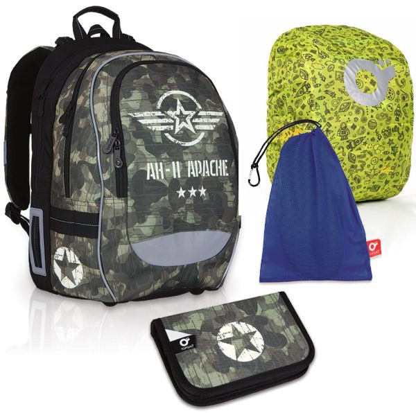 Jednoduché členenie školského batohu s dvoma komorami a veľkou priestrannou prednou kapsou je pre chlapcov ideálne. Žiadne zbytočné zipsy, žiadne hľadanie školských vecí. V prednej komore nájdeme menovku a kapsičku na drobnosti, v prednom vrecku karabínu na kľúče. Batoh má ergonomicky riešené ramenné popruhy aj vystuženie chrbta s vyberateľným hliníkovým rámom. Samozrejmosťou je dostatočné množstvo reflexných prvkov zaisťujúcich bezpečnosť. Elastické vrecko na fľašu je prakticky umiestnená z bočnej strany batohu.