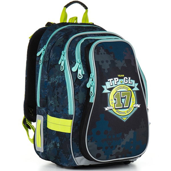 Trojkomorová stálica medzi školskými batohmi pre chlapcov od 2. do 5 triedy ZŠ. Tento strih batohu je u Topgalu stálicou. Jednoduché členenie objemného batohu je pre chlapcov ideálne. Žiadne zbytočné zipsy, žiadne hľadanie školských vecí. V prednej hlbokej komore nájdeme menovku a odnímateľnú karabínku (napríklad na kľúče), predné vrecko je ako stvorené pre prenášanie desiaty alebo ďalších nevyhnutností. Batoh má ergonomicky riešené ramenné popruhy aj vystuženie chrbta s vyberateľným hliníkovým rámom. Samozrejmosťou je dostatočné množstvo reflexných prvkov zaisťujúcich bezpečnosť. Elastické vrecko na fľašu je prakticky umiestnené z bočnej strany batohu. Ďalší popis: