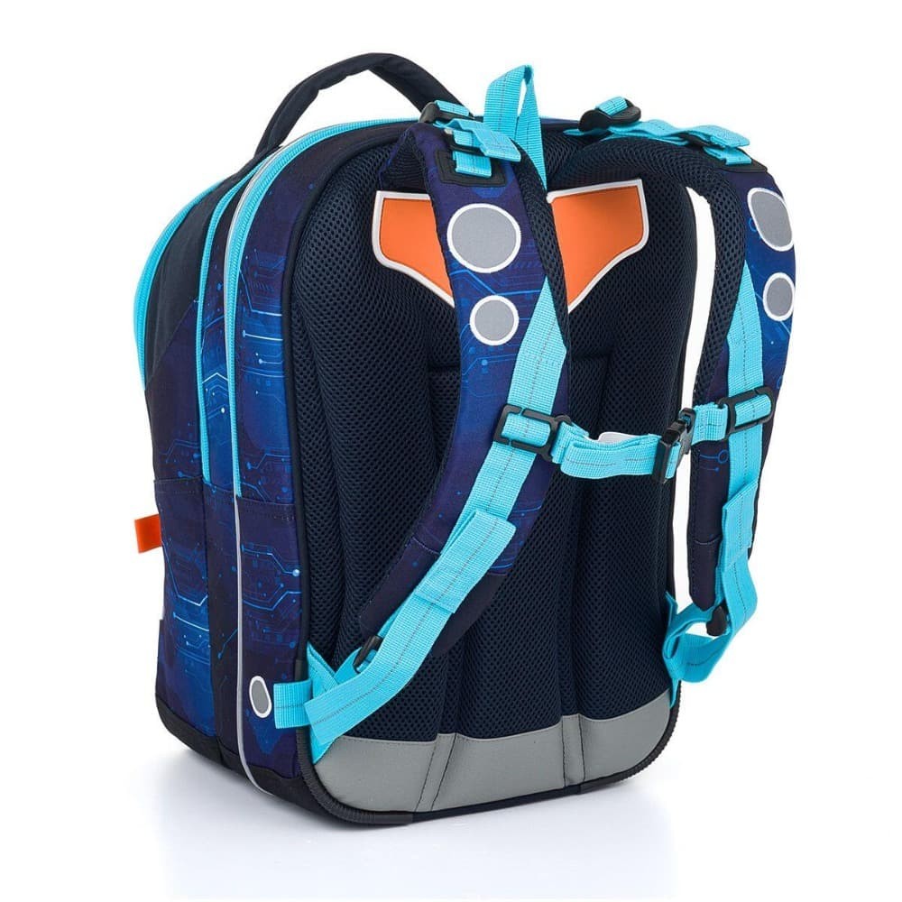 - reflexné prvky: na čele a bokoch batohu, na ramenných popruhoch