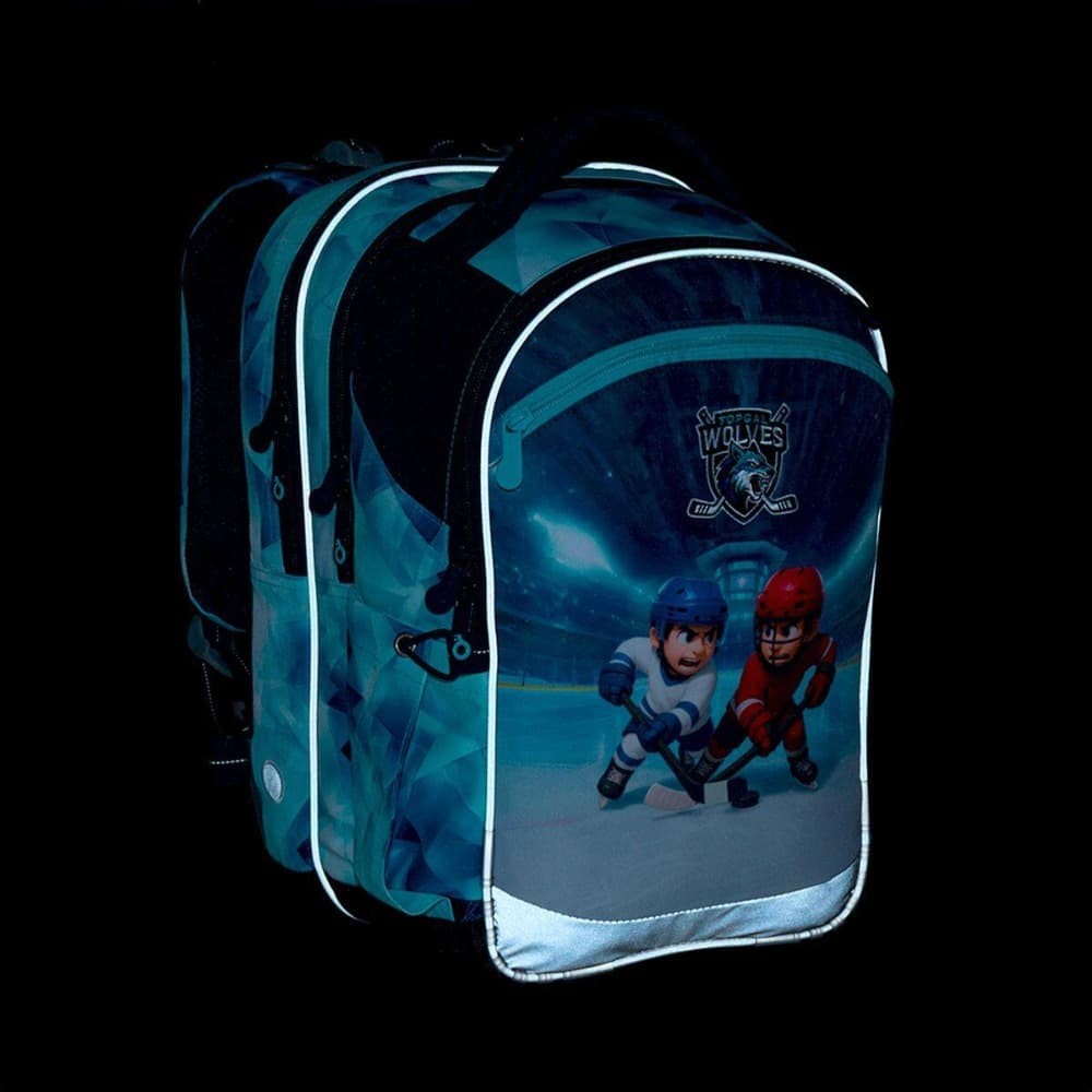Školský batoh vhodný pre deti od 120 cm a ideálny pre školákov od 1. do 4. triedy. Dynamický motív ľadového hokeja osloví všetkých malých športovcov, ktorí milujú rýchlosť, tímovú hru a pohyb. Batoh má ergonomicky tvarovaný chrbát a mäkko polstrované ramenné popruhy, ktoré sa ľahko prispôsobia detskému chrbtu. Výškovo nastaviteľná hrudná pracka pomáha udržať batoh v správnej polohe a zvyšuje pohodlie pri nosení.