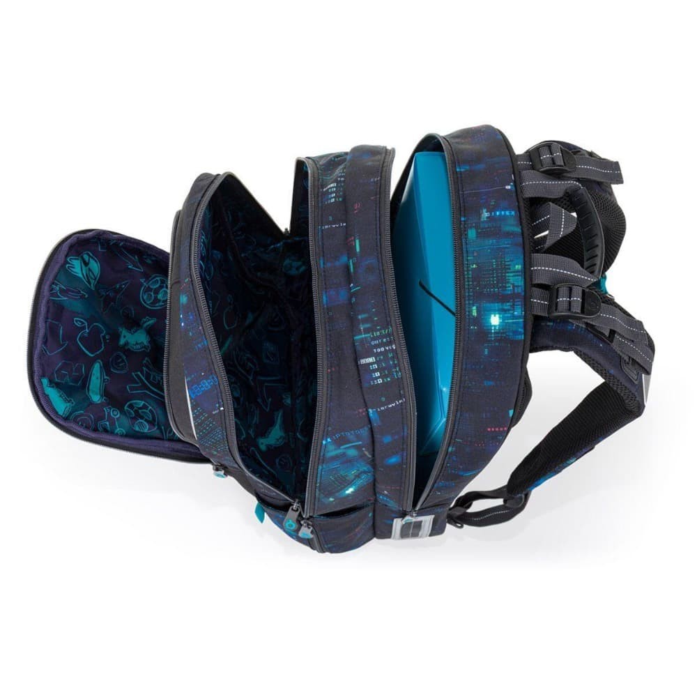 Školský batoh pre starších školákov, ktorí hľadajú spojenie moderného dizajnu a praktického riešenia. Dynamický abstraktný vzor v modro-ružových tónoch dodáva batohu energický vzhľad, ktorý zaujme na prvý pohľad. Batoh má ergonomicky tvarovaný chrbát a mäkko polstrované ramenné popruhy, ktoré sa dajú jednoducho nastaviť podľa postavy dieťaťa. Vďaka výškovo nastaviteľnej hrudnej pracke batoh dobre drží na chrbte a pohodlne sa nosí aj pri dlhšom nosení.