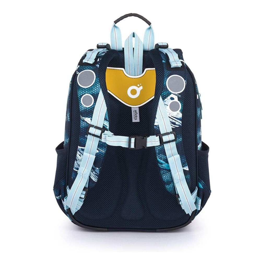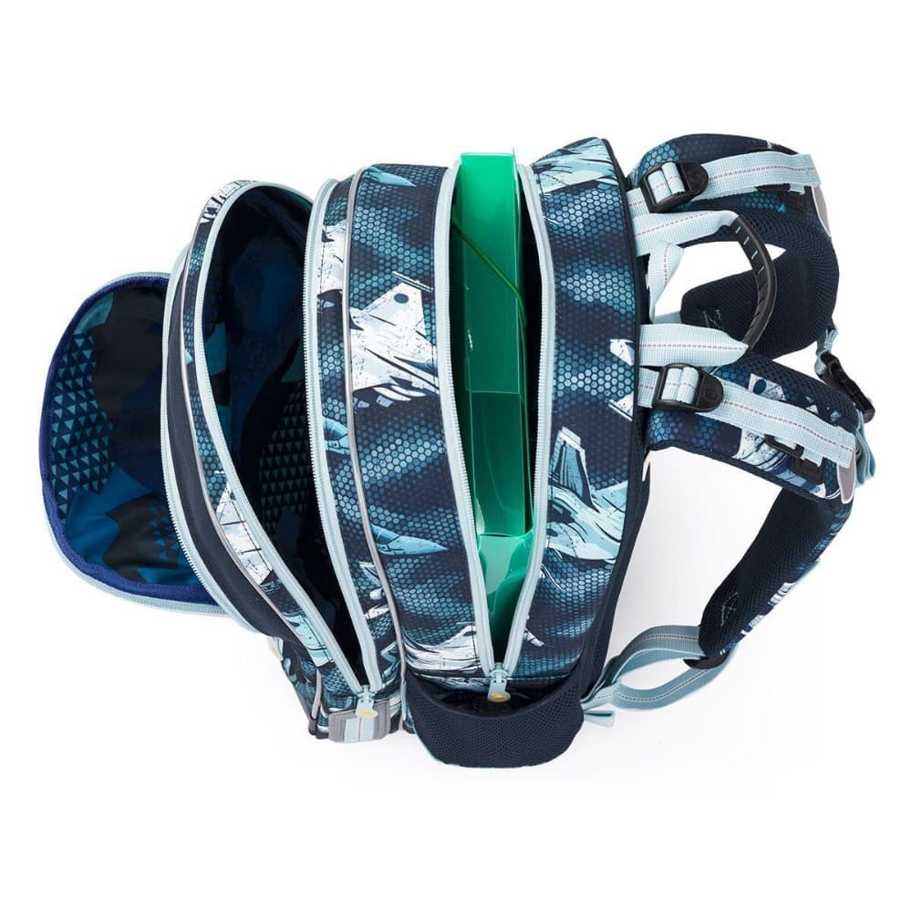 Batoh má dve objemné hlavné komory. Zadná komora je objemnejšia a spoľahlivo pojme všetky učebnice. Predná komora je o niečo užšia a ukrýva malé sieťované vrecko na zips a menovku.