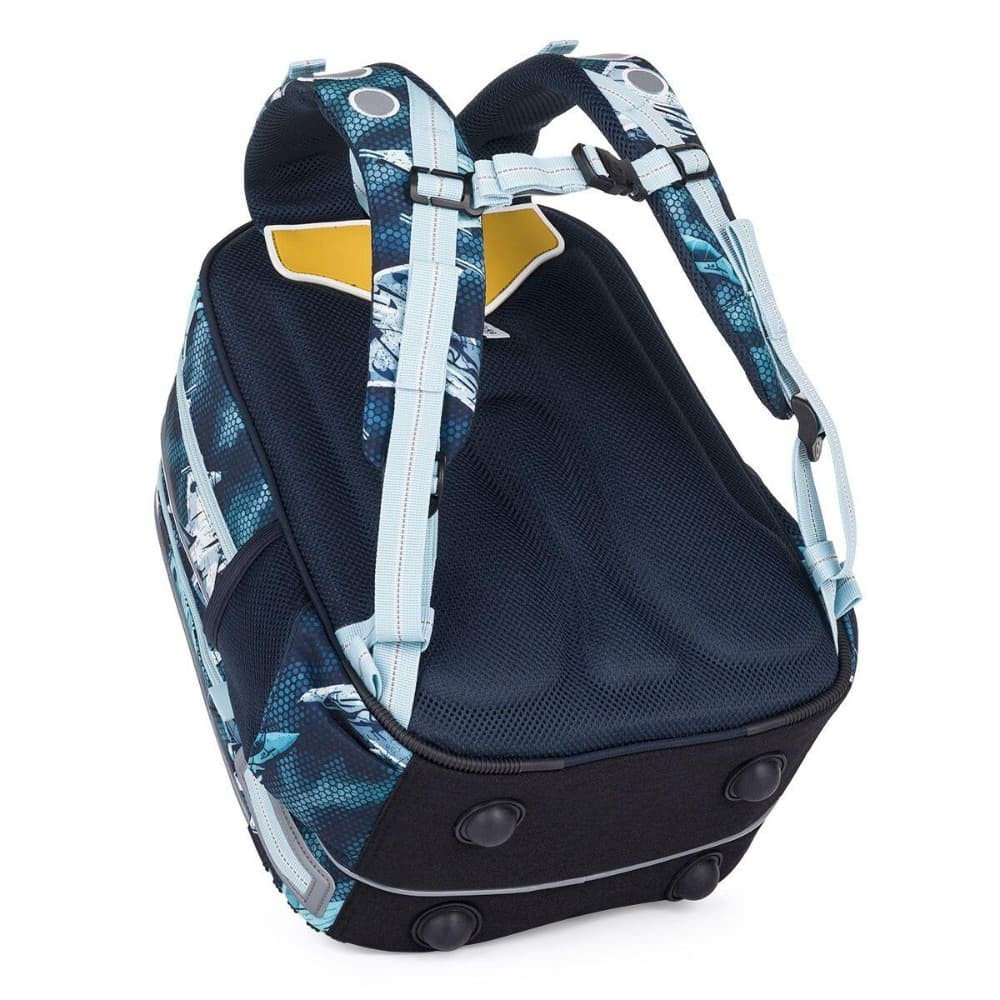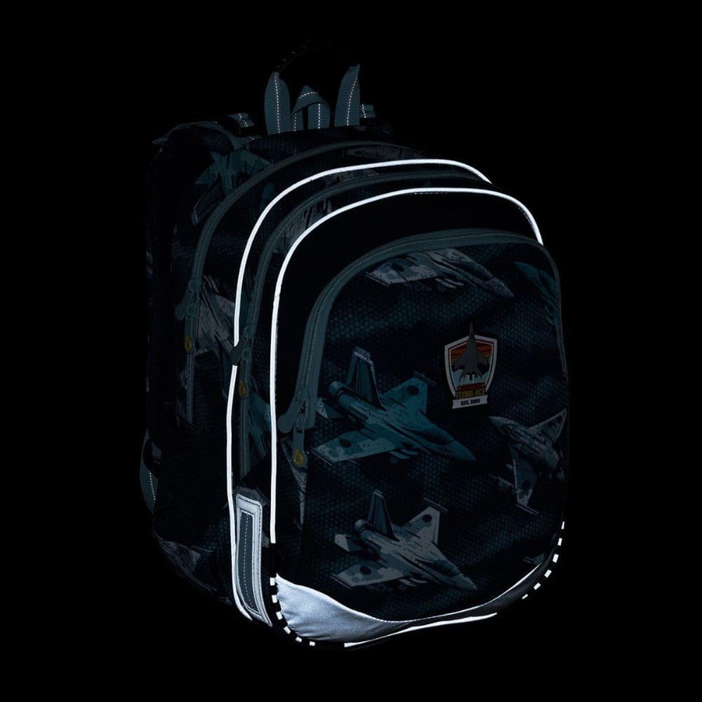 Modrý batoh so stíhacími lietadlami Raptor je určený pre malých školákov na prvom stupni ZŠ. Model ELLY neváži ani kilogram, preto je ideálny pre chlapcov od prvého až do štvrtého ročníka ZŠ s výškou od 115 cm. Potlač stíhačiek dopĺňa gumová nášivka.