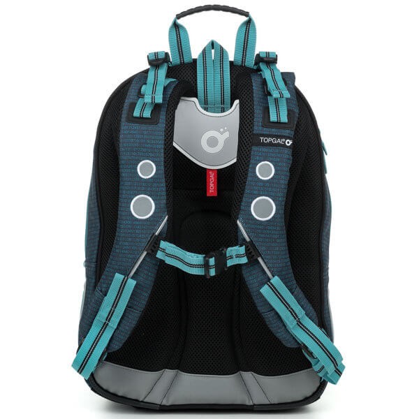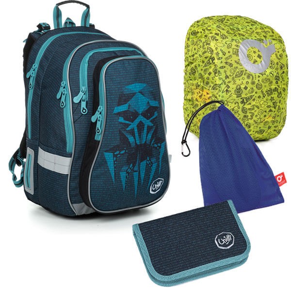 Ide o jeden z najobľúbenejších modelov batohu, ktorý vďaka svojmu objemu poslúži minimálne do piatej triedy. Tri hlboké komory a predné veľké vrecko sú ideálnou voľbou chalanov, ktorí toho musia na chrbte nosiť moc. Aj preto je batoh vybavený anatomicky tvarovaným chrbtom s ľahkou hliníkovou výstuhou, ktoré zaistia správnu cirkuláciu vzduchu medzi chrbtom a vystužením. Ramenné popruhy sú ergonomicky tvarované, dajú sa utiahnuť ako na dĺžku v ich spodnej časti, ako aj k chrbtu v hornej časti. Samozrejmosťou je hrudný popruh, vďaka ktorému batoh nekĺže z ramien. Do užšej zadnej komory určite umiestnite tie najťažšie učebnice alebo dosky na zošity. Prostredná komora je najširšia a je v nej umiestnená aj praktická kapsička na zips. Predná komora má užší vstup, takže je ako stvorená pre prenášanie peračníka v rovnakom dizajne. Navyše sú v nej tiež umiestnené menovka a karabínka na kľúče. Hlboké predné vrecko dobre poslúži napríklad na desiatu, fľaša nájde svoje miesto na boku batohu v bočnej kapsičke.