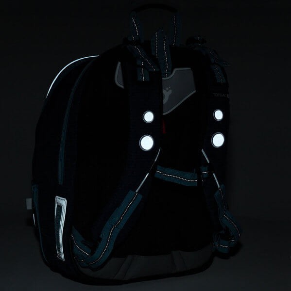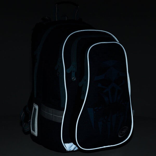 Reflexné prvky nájdete aj u tohto batohu na rade miest - na spodnej časti čela batohu, ako aj na paspulách predného vrecka a komory, na boku batohu a na ramenných popruhoch.