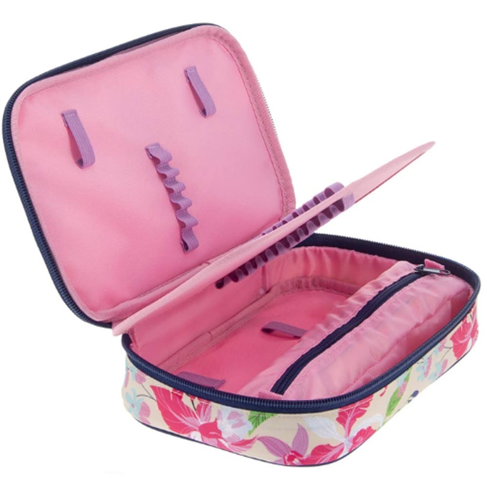Priestranný školský peračník z kvetinovej kolekcie Beach Flowers od výrobcu Ars Una s jedným zipsovým vreckom a rozmerným úložným priestorom vo vnútri. Peračník do školy sa uzatvára pomocou zipsu s kovovým pútkom pre lepšiu manipuláciu. Vnútri puzdra sa nachádzajú dve poschodia. V prvej komore sa nachádzajú gumičky na pravítko a pútka pre 18 pasteliek. V druhej komore nájdete 12 gumičiek na fixky, pastelky, ceruzky či perá na jednej strane a na opačné vrecko na zips spoločne s gumičkami na strúhadlo a mazaciu gumu.