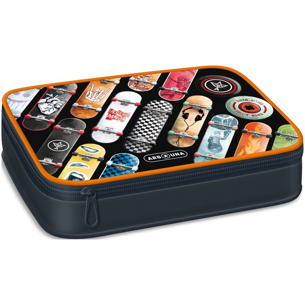 Priestranný školský peračník z kolekcie Rollin Mania od výrobcu Ars Una s jedným zipsovým vreckom a rozmerným úložným priestorom vo vnútri. Puzdro sa uzatvára pomocou zipsu s kovovým pútkom pre lepšiu manipuláciu.