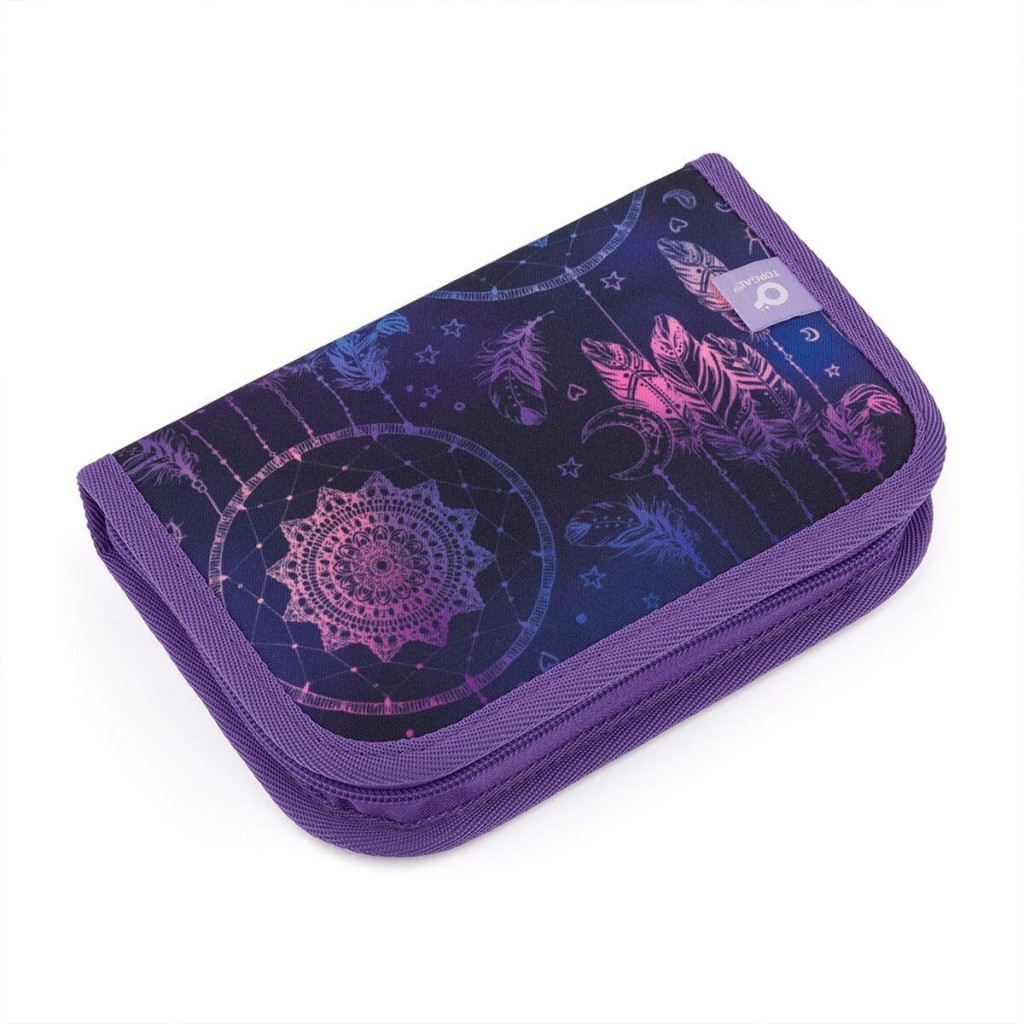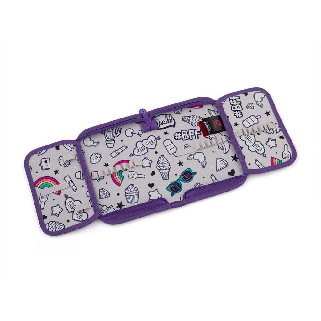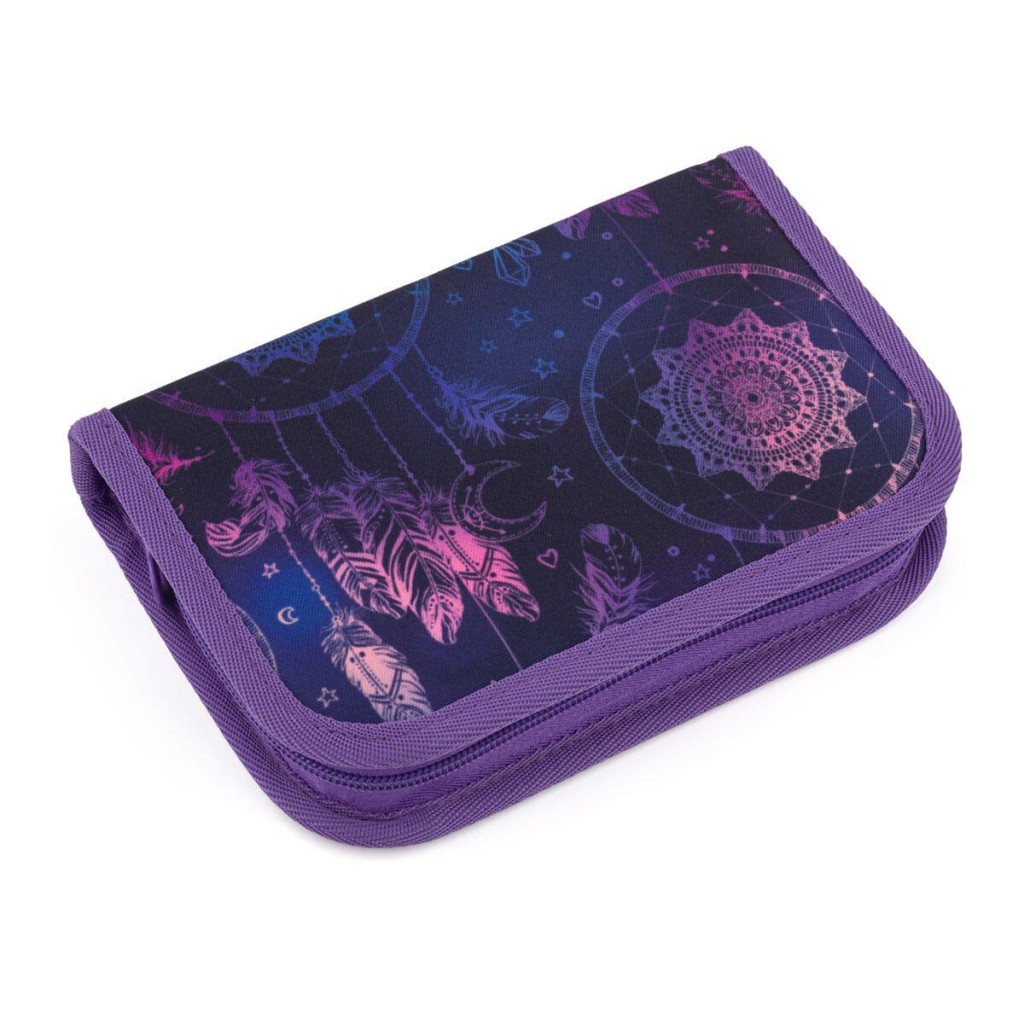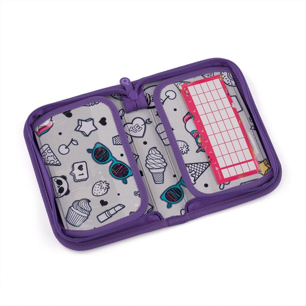 Jednoposchodový peračník do školy s dvoma chlopňami ponúka 21 elastických úchytov na pastelky a fixky, tri širšie na pravítko, kružidlo či nožnice a dva väčšie na gumu a strúhadlo. Pod priehľadnou fóliou nájdete rozvrh hodín, druhá môže slúžiť napríklad na poznámky alebo ťaháky.
