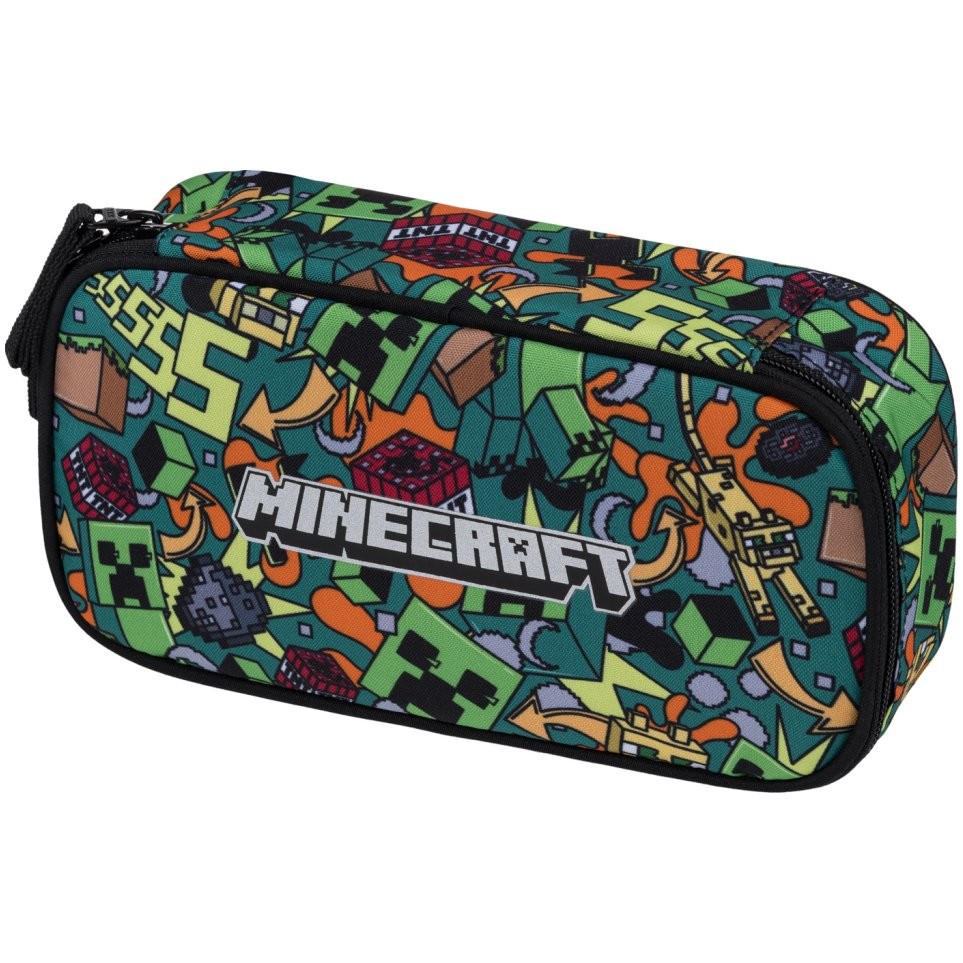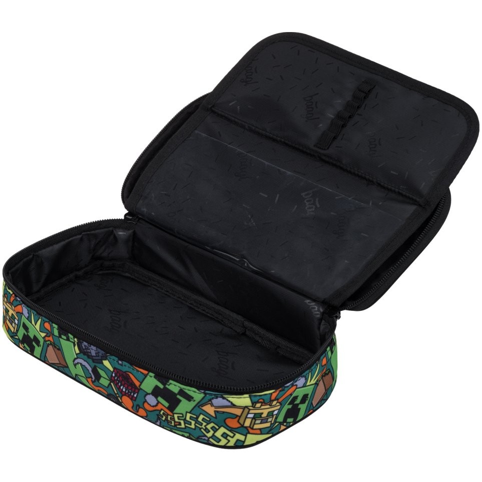 Školský batoh pre 2. stupeň Baagl, model Skate Minecraft Chaos – trojdielna sada obsahuje batoh, peračník a vak na cvičky s jednotným motívom.