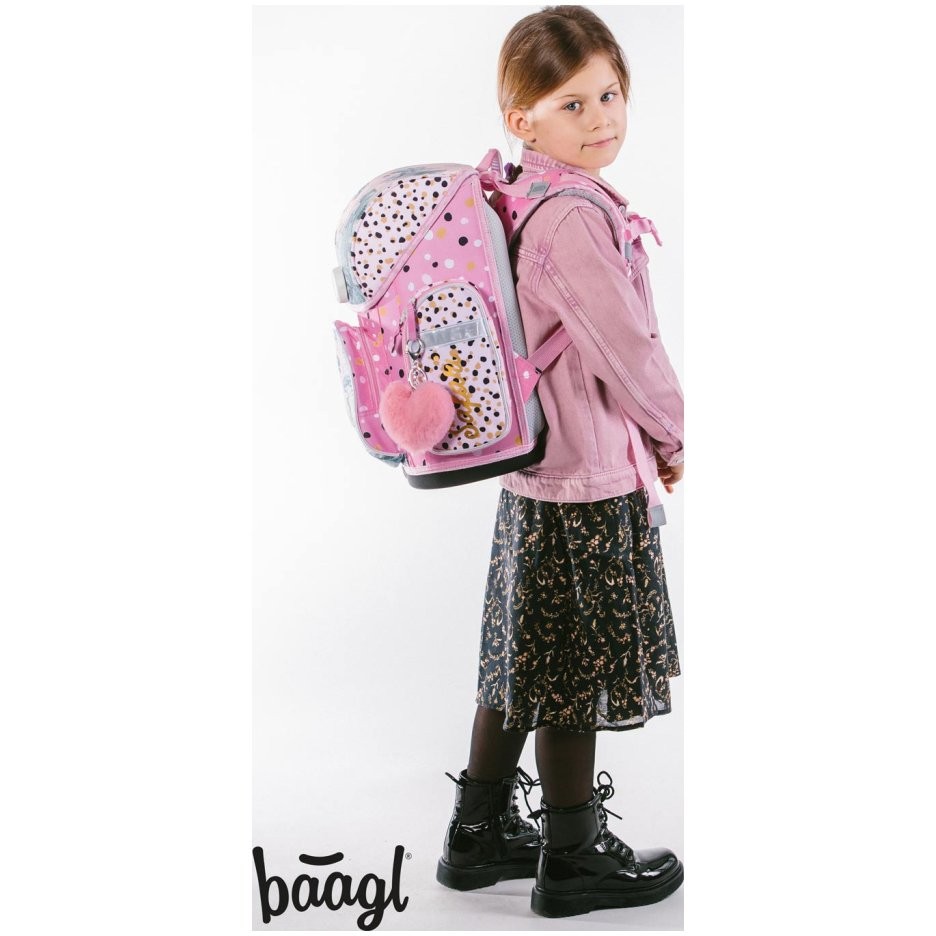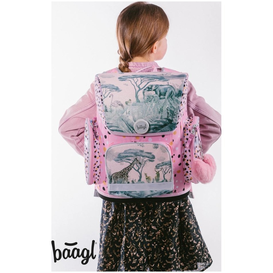 Školská taška Baagl Ergo Safari s trendy príveskom je vhodná pre deti od 1. triedy ZŠ, odporúčame ju vyšším prváčikom. Aktovka je vhodná pre deti nad 130cm. Trojdielny set tvorí taška, peračník a vrecko na cvičky.
