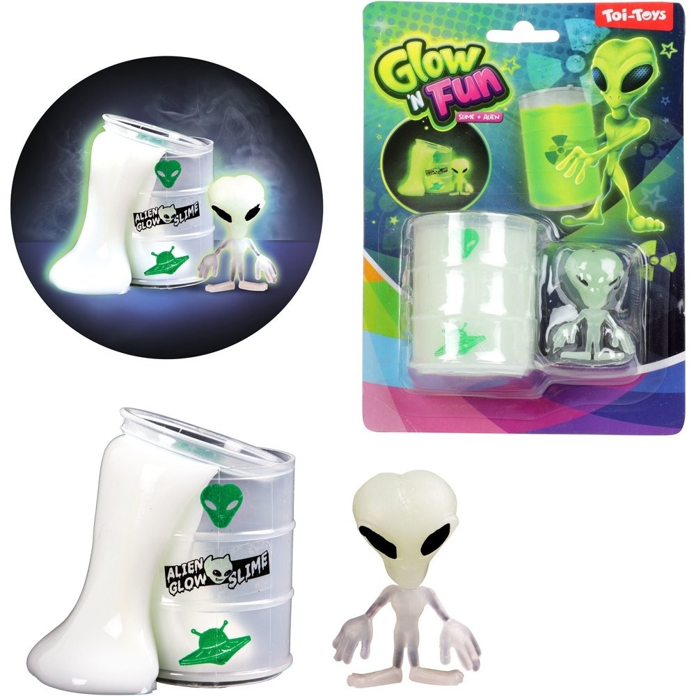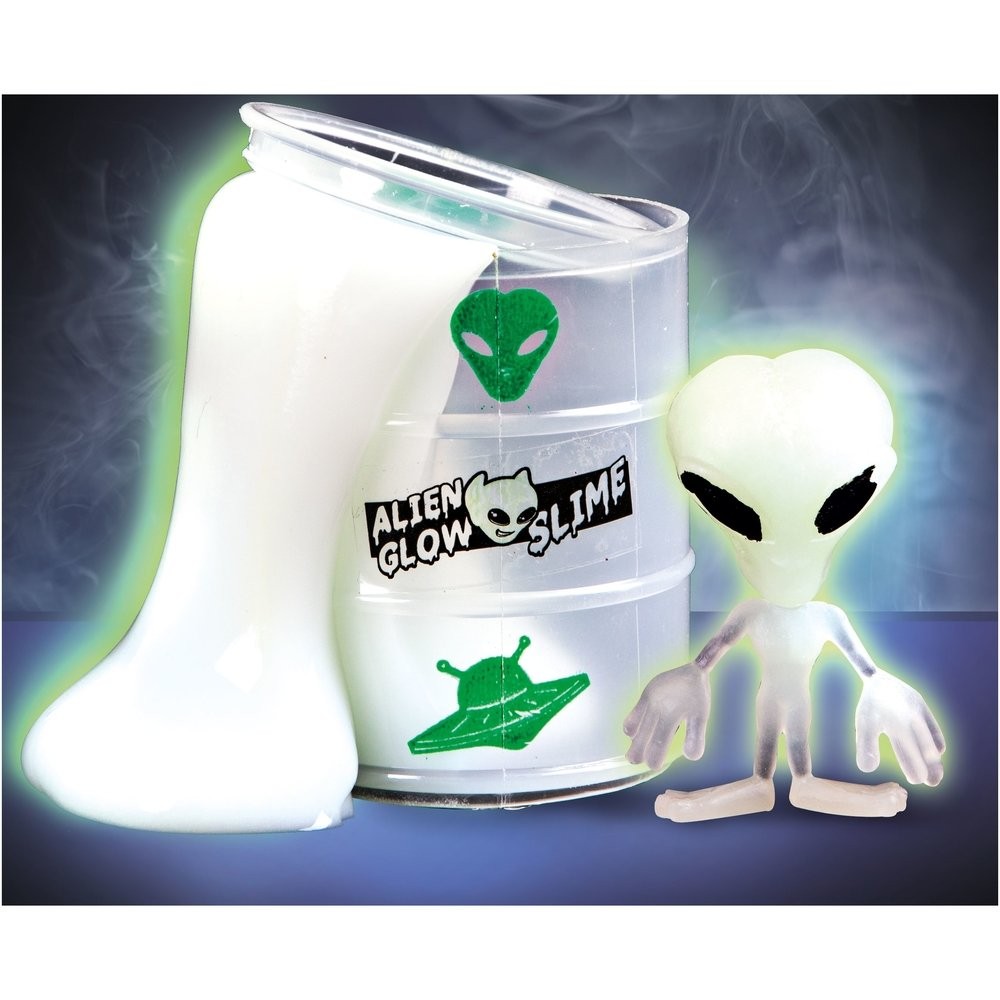 Svietiaci sliz je zábavná a žartovná hračka, s ktorou sa môžete hrať celý deň. Nechaj si svojimi rukami pretekať sliz, ktorý v tme svieti. Balenie obsahuje hmotu v priehľadnom tégliku s mimozemšťanom.